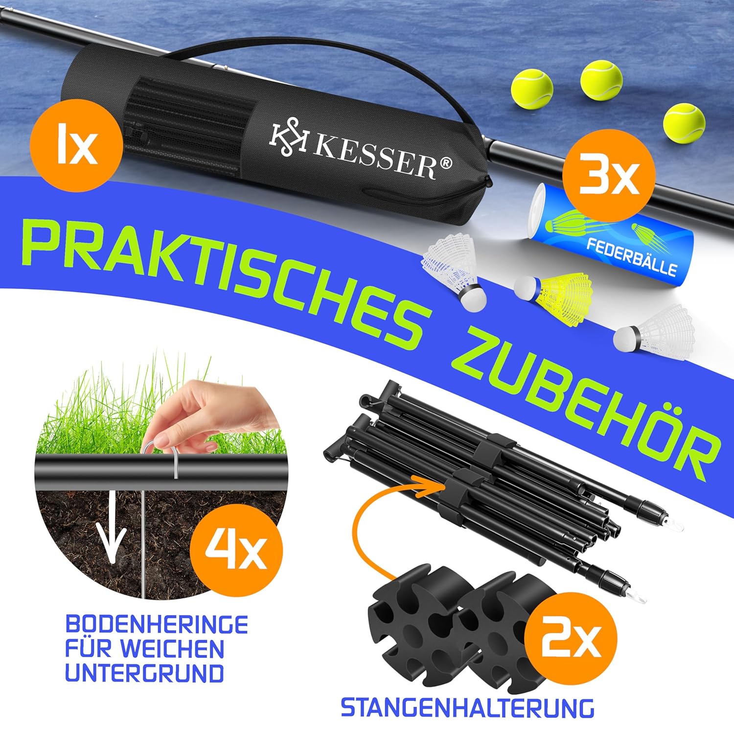 Stellen Sie sich einen sonnigen Sonntagnachmittag im Garten vor: Die Kleinen dribbeln einen Fußball durch das Netz, während die Teenager Federbälle schlagen. Später wechselt man zu einem lockeren Tennis-Duell oder einem Volleyball-Match über das Netz. Das KESSER® Set macht all das möglich – ohne teure Zusatzgeräte, ohne komplizierte Umbauten. Es ist das ideale Spielset für Familien, die Wert auf aktive Freizeitgestaltung legen, für Campingurlauber, die am Strand spielen möchten, oder für Schulen und Kindergärten, die ein robustes, vielseitiges Sportgerät suchen.