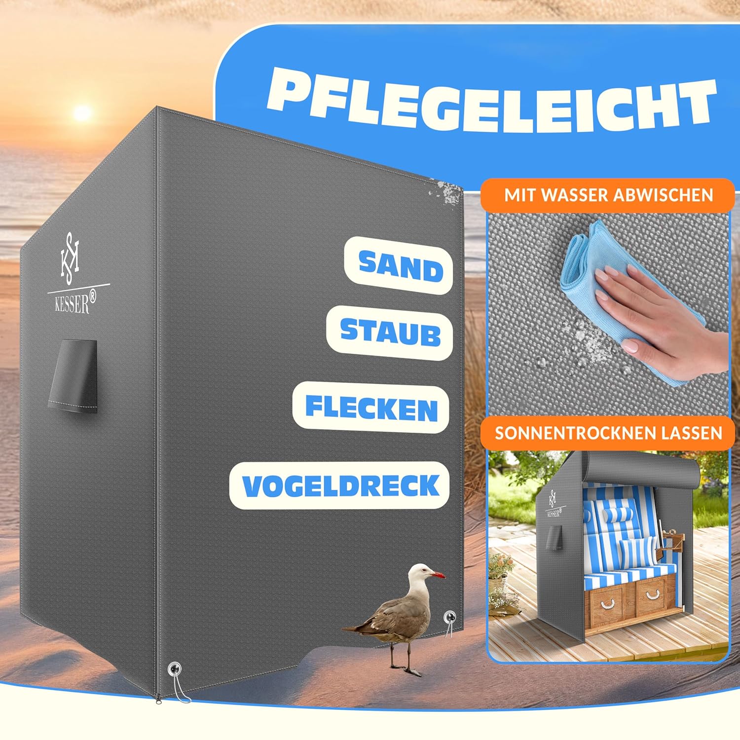 Ein gemütlicher Nachmittag auf der Terrasse, die Sonne strahlt, das Meer rauscht im Hintergrund – der perfekte Moment, um es sich auf Ihrem bequemen Strandkorb oder Liegestuhl gemütlich zu machen. Doch was passiert, wenn die Saison vorbei ist oder das Wetter ungemütlich wird? Ihre geliebte Garten- und Strandliege verdient mehr als nur eine hastige Abdeckung oder ein Versteck unter einer Plane. Mit der KESSER® Premium Beach Chair Schutzhülle erhalten Sie ein hochwertiges Schutzaccessoire, das nicht nur optisch überzeugt, sondern auch unter extremen Witterungsbedingungen zuverlässig schützt. Entwickelt für anspruchsvolle Nutzer, die Wert auf Langlebigkeit, Design und Funktionalität legen, ist diese Hülle die intelligente Investition in die Lebensdauer Ihres Möbelstücks.