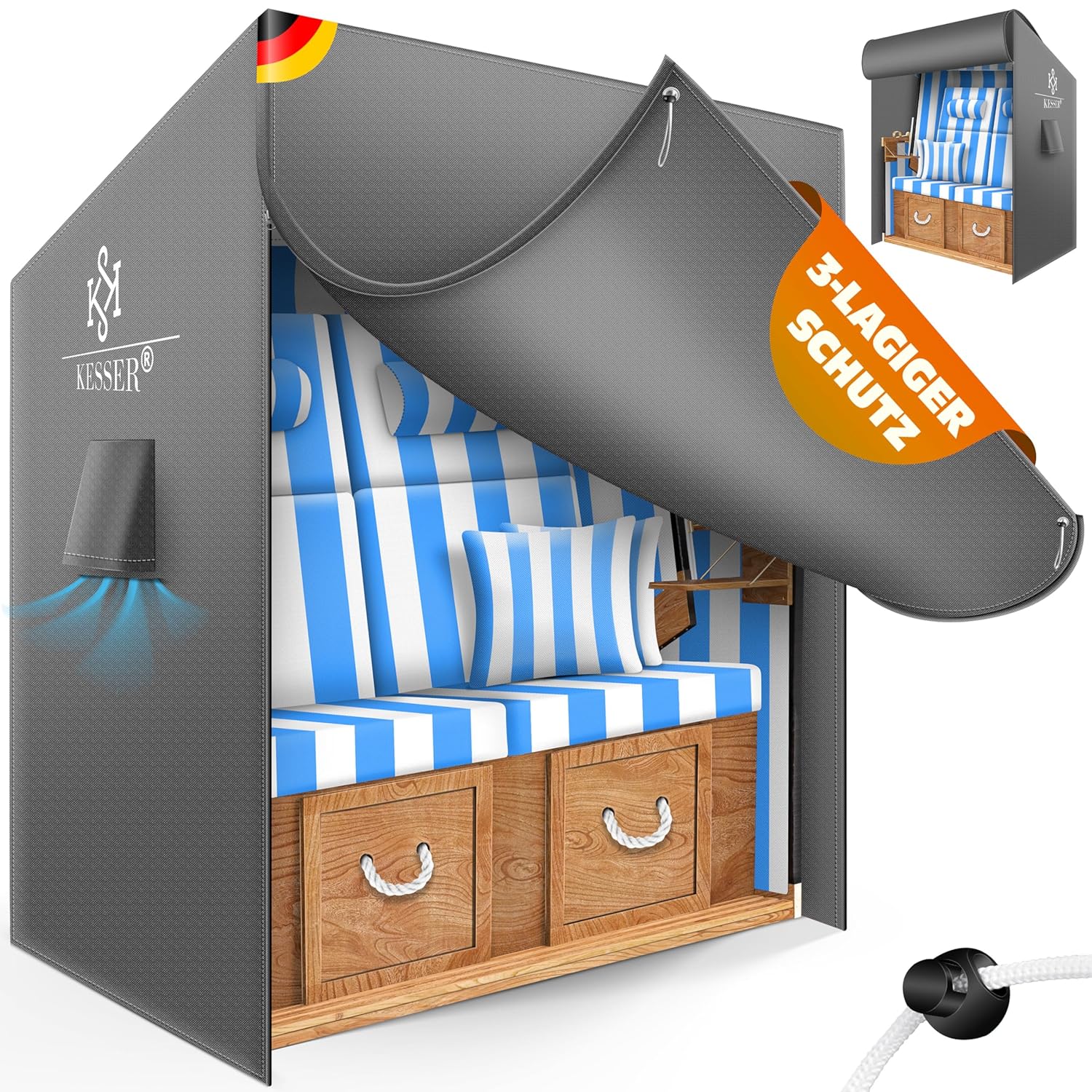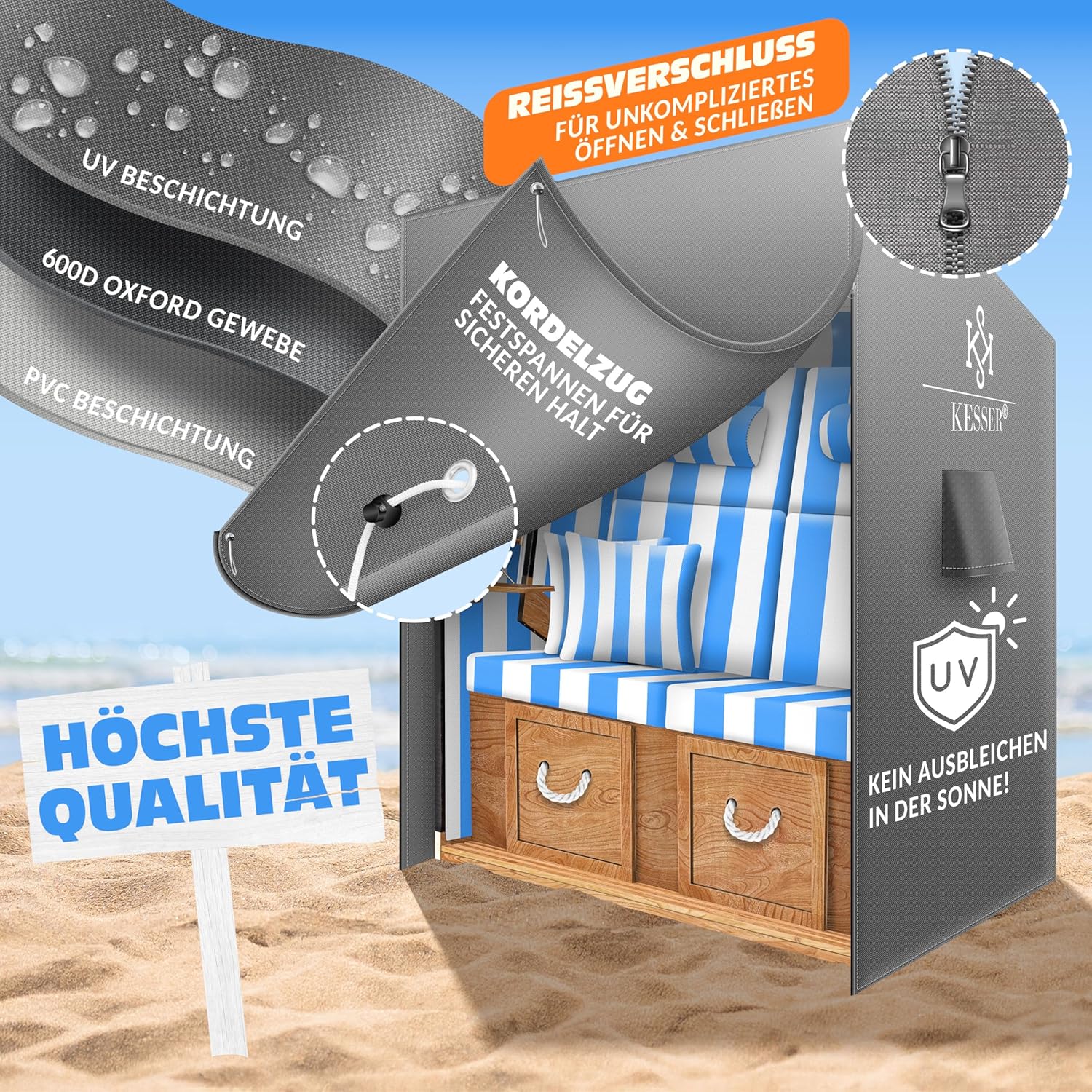 • Passgenau für Strandkorb-Chairs bis 135 cm Breite