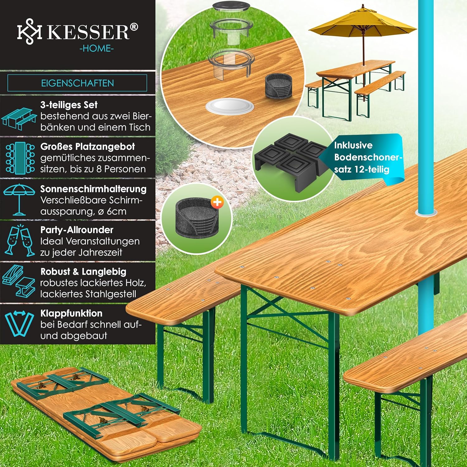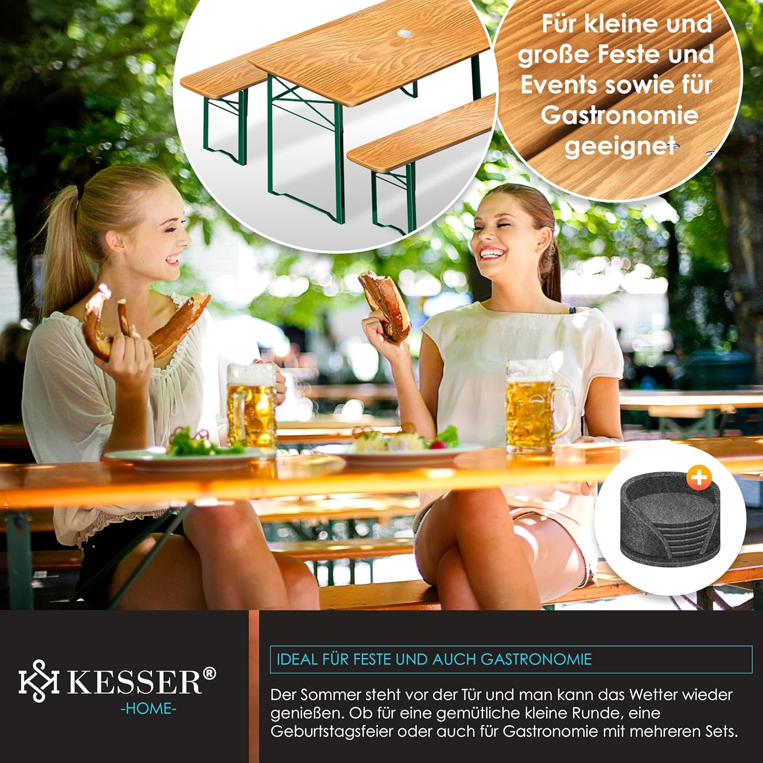 Kesser® Beer Tent Set – 3-teiliges Gartenmöbel-Set aus Holz für bis zu 8 Personen | Faltbare Bierzeltgarnitur mit Tisch und 2 Bänken | Marquee Möbel für Garten, Terrasse & Veranstaltungen