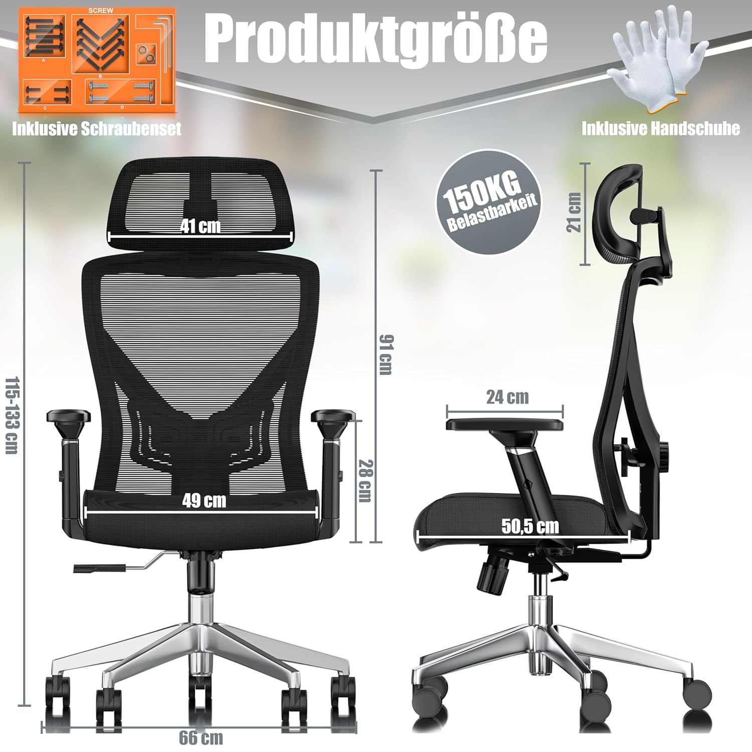 • 1 x KESSER® Ergonomic Office Chair (Rückenlehne, Sitzfläche, Gestell)