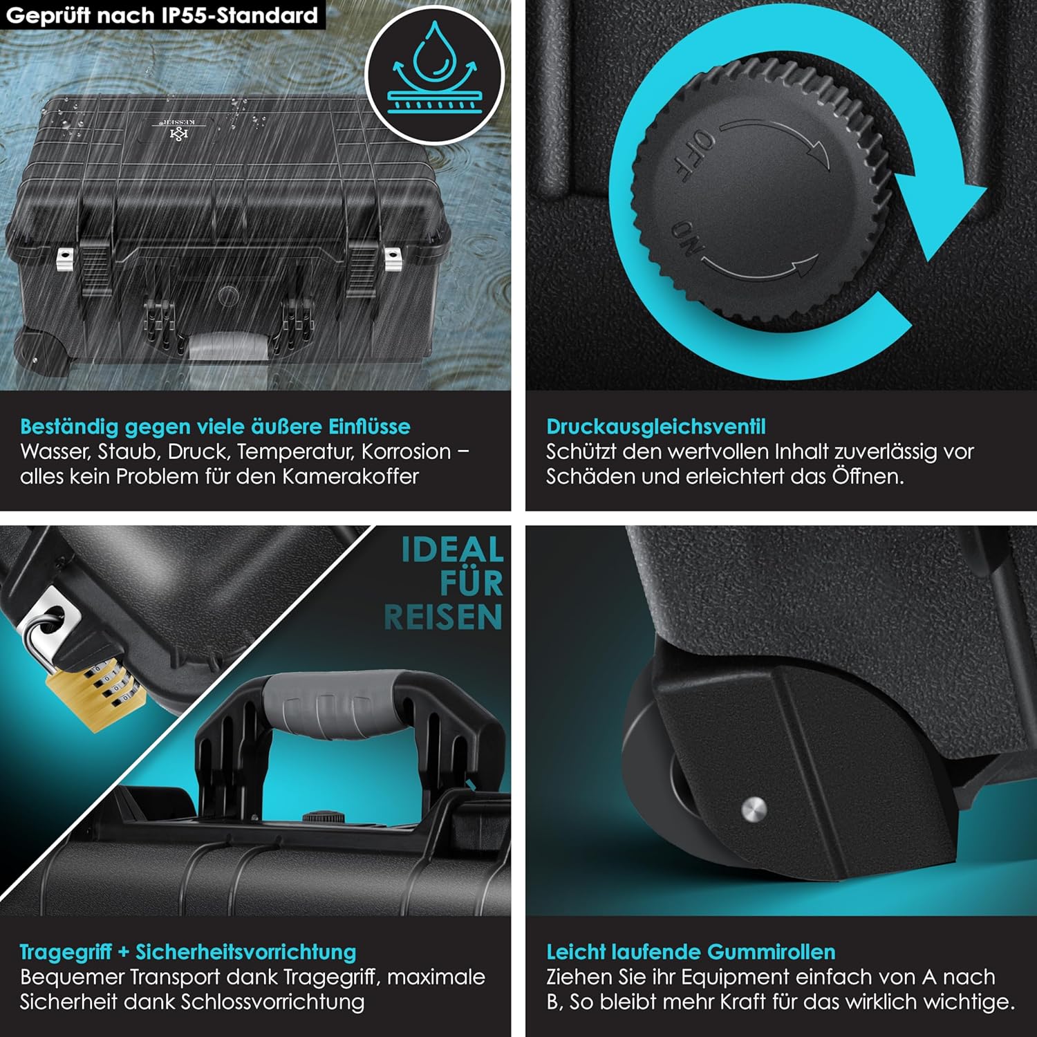 - 1x KESSER® Camera Case (Hardshell-Koffer mit Rädern und Teleskopgriff)