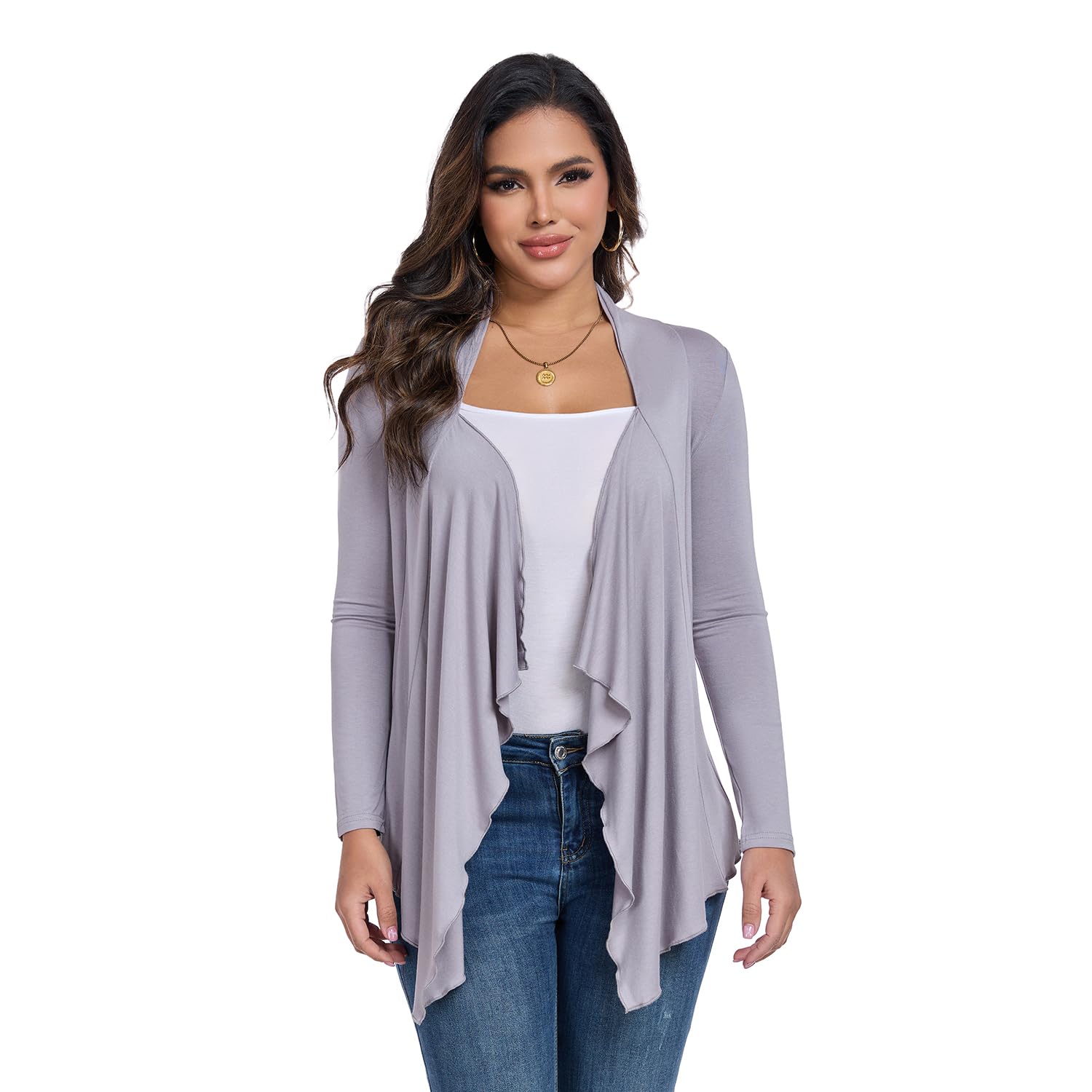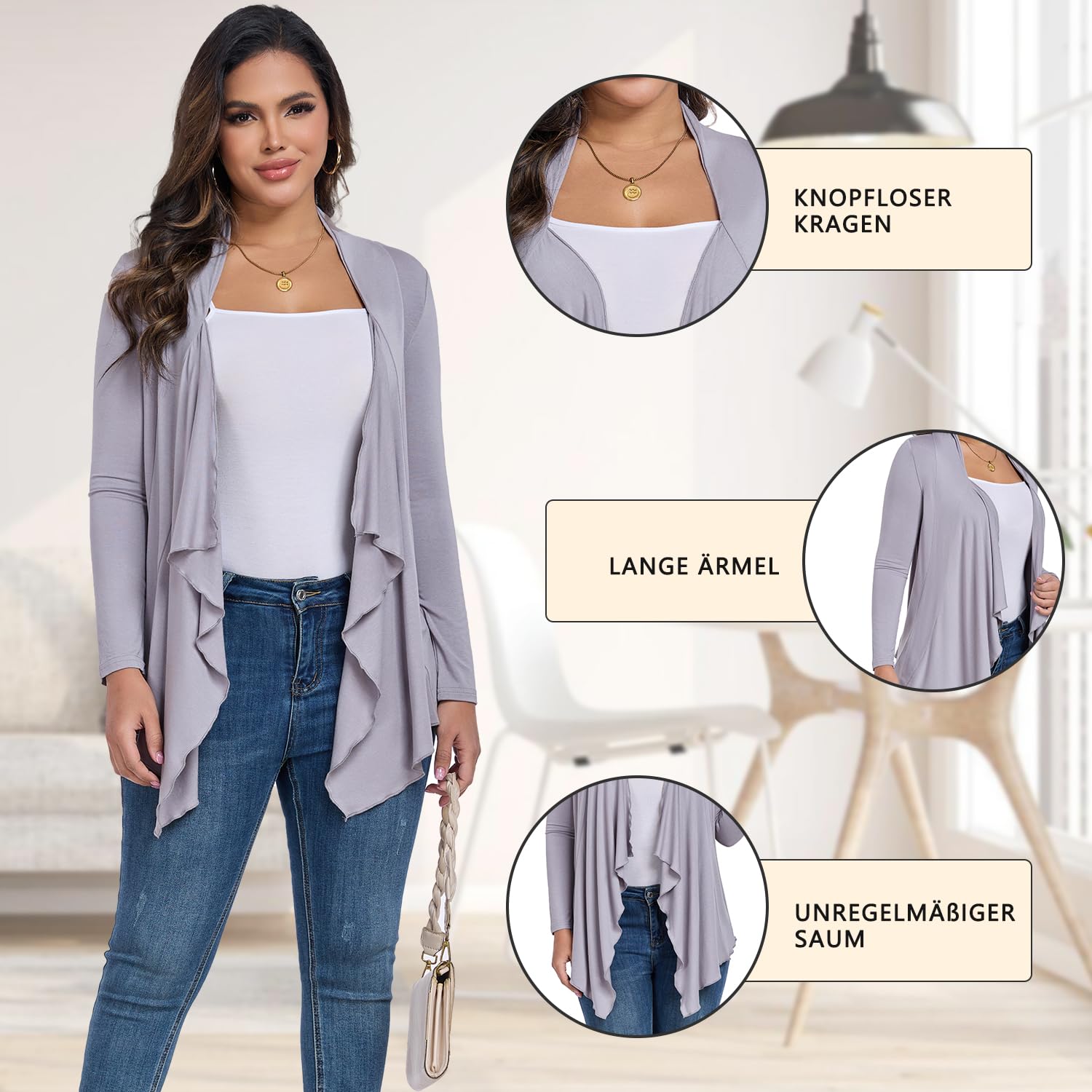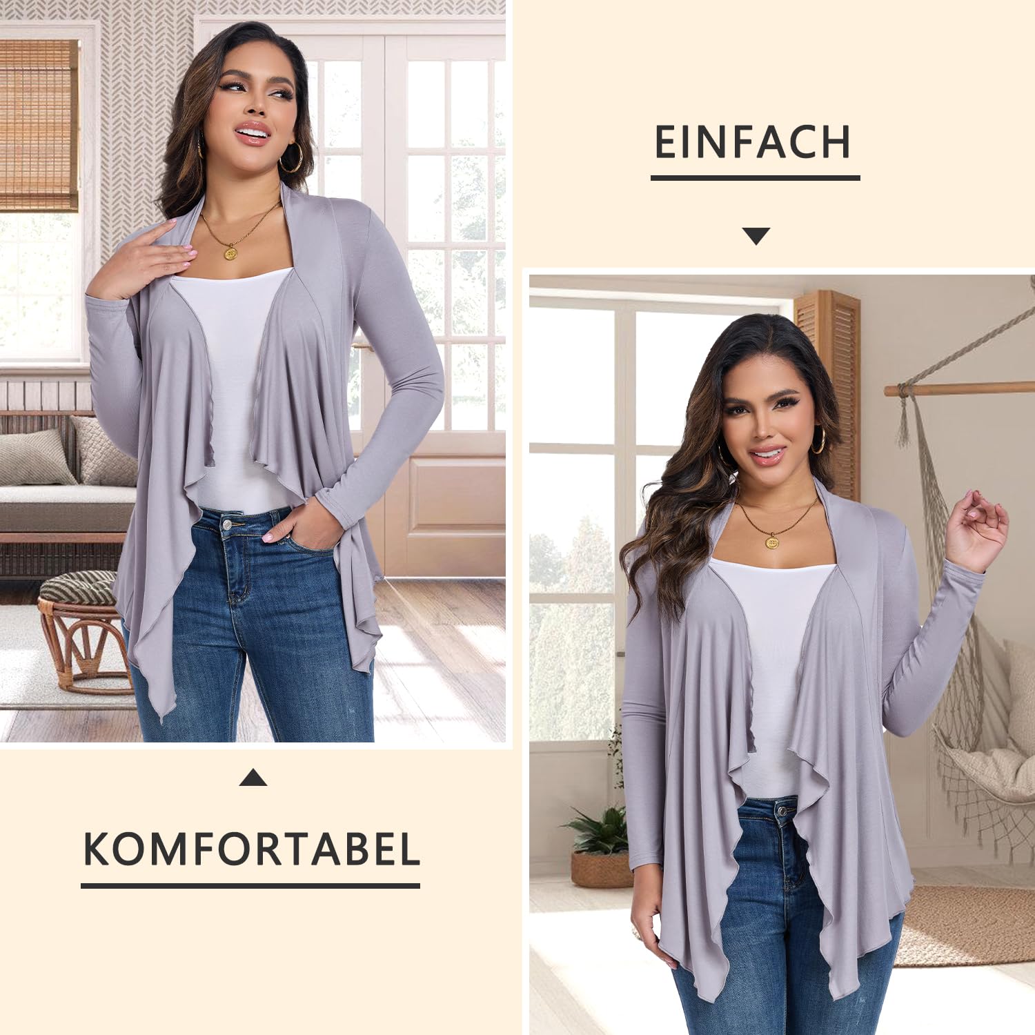 KESSER Damen Cardigan – Eleganter Langarm-Cardigan mit Unregelmäßigem Saum, Plissee-Optik, Langer Passform, Weicher & Leichter Tragekomfort für Alltag & Freizeit