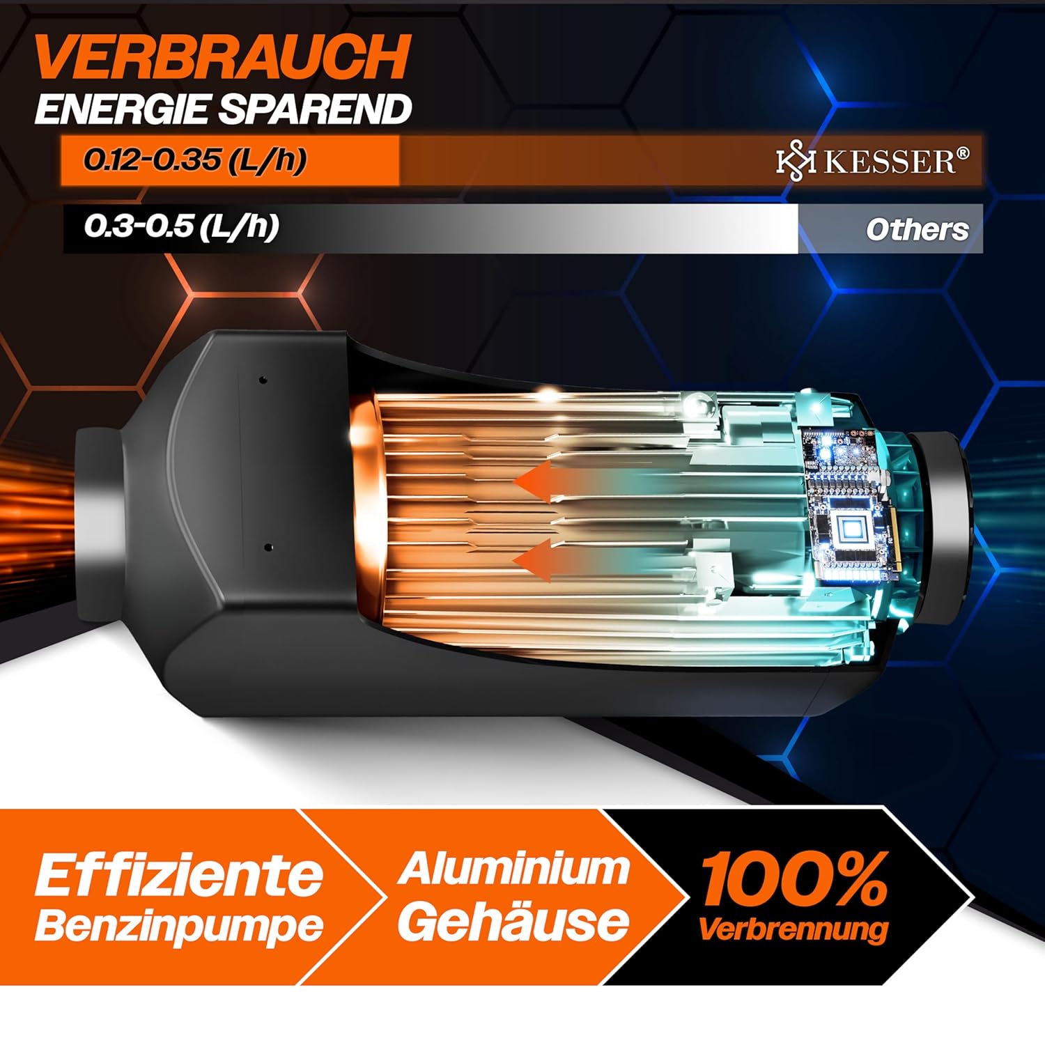 Die Ingenieure von KESSER® haben bei der Entwicklung besonderen Wert auf ein ausgewogenes Verhältnis aus Leistung, Laufruhe und Energieeffizienz gelegt. Der Dieselpreis mag steigen – doch dank des optimierten Verbrennungssystems und der intelligenten Regeltechnik verbraucht der KESSER® Diesel-Vorwärmer nur so viel Kraftstoff, wie nötig ist, um den gewünschten Komfort zu erzeugen. Ob Sie morgens vor der Arbeit das Wohnmobil vorheizen, den Werkstattraum für eine lange Reparaturschicht temperieren oder Ihr Gartenhäuschen für einen gemütlichen Abend mit der Familie vorbereiten – dieser Heizer wird zum stillen Begleiter für mehr Lebensqualität in kalten Zeiten.