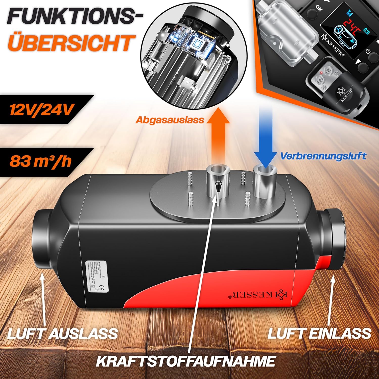 KESSER® Dieselheizung 8 kW mit Timer, LCD-Display & Fernbedienung, 12/24 V