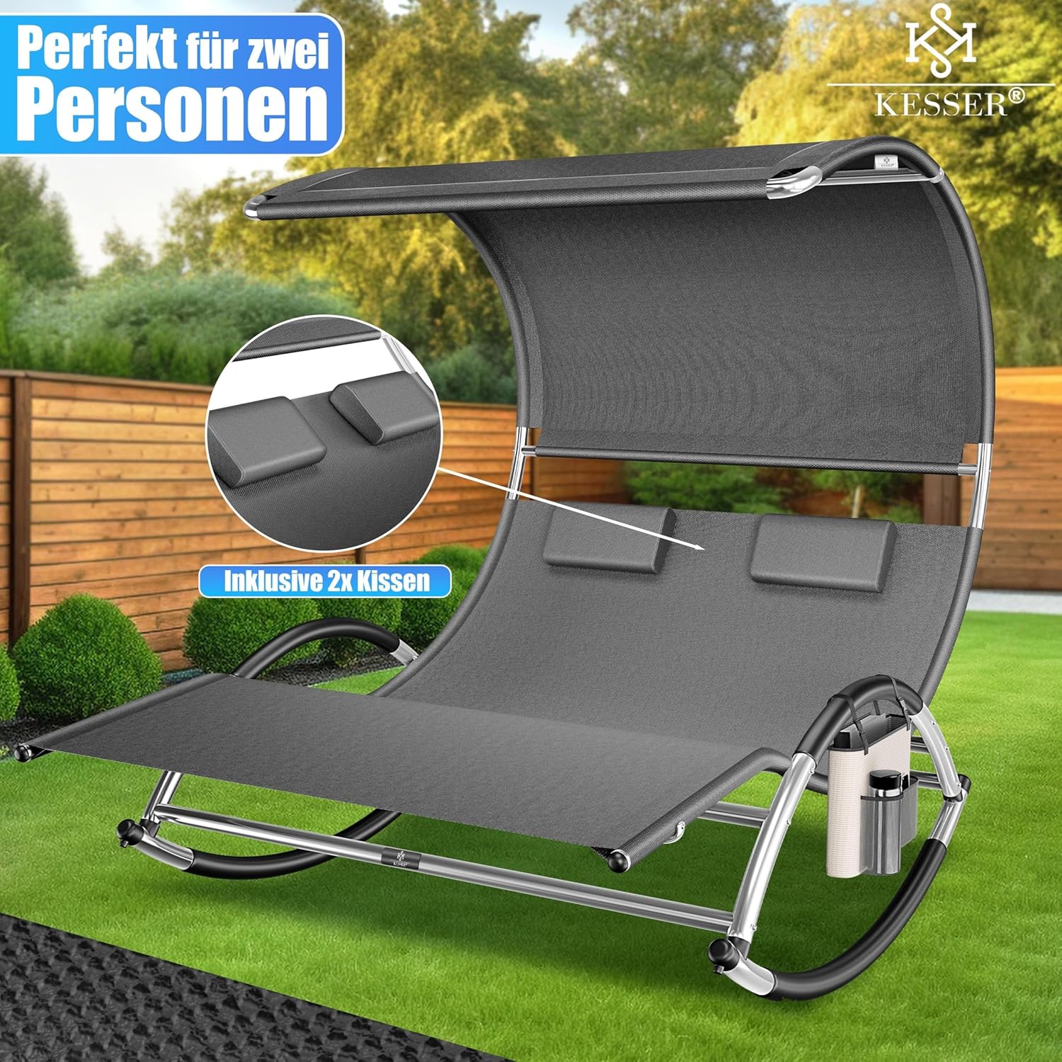 Genießen Sie gemeinsame Momente der Entspannung mit dem KESSER® Double Sun Lounger – dem luxuriösen Zweipersonen-Schaukel Liegestuhl, der Ihr Outdoor-Living auf das nächste Level hebt. Dank des ergonomisch geformten Komfortsitzes, der bis zu 240 kg trägt, schaukeln Sie sanft im Wind und lassen den Alltag hinter sich – ob zu zweit auf der Terrasse, zu…