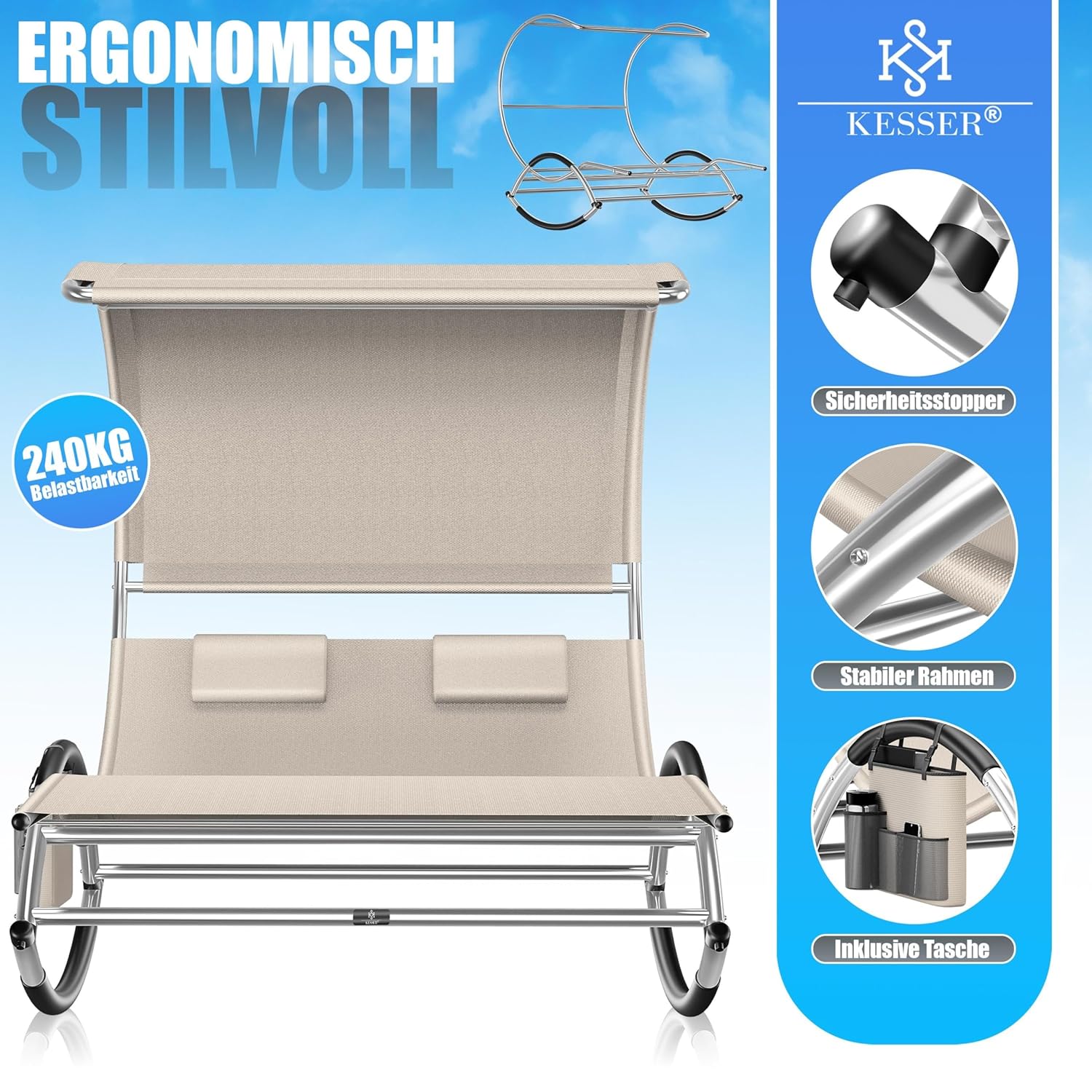 KESSER® Double Sun Lounger mit Sonnendach, Kissenbeutel für 2 Personen – Die neue Dimension von Entspannung im Freien