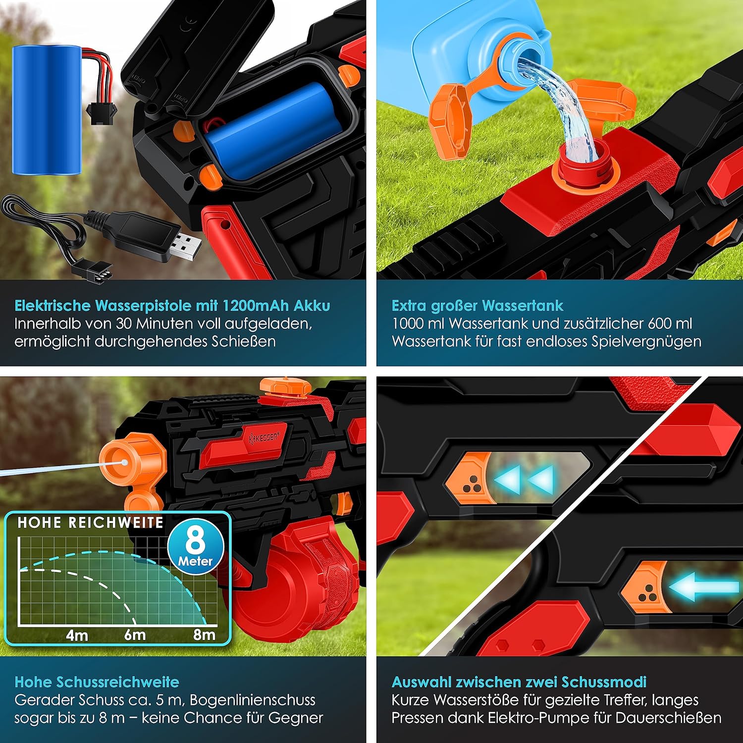 KESSER® Electric Water Gun – Der ultimative Wasserspaß für die ganze Familie mit bis zu 8 m Schussweite, 1000 ml Tank & extraschneller USB-Aufladung