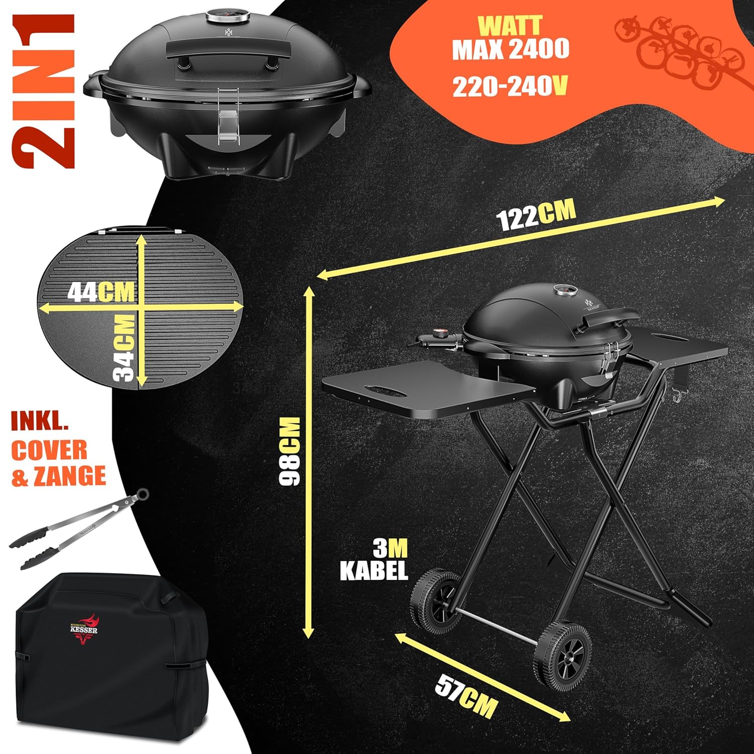 - KESSER® Electric Grill 2-in-1 Stand- und Tischgrill