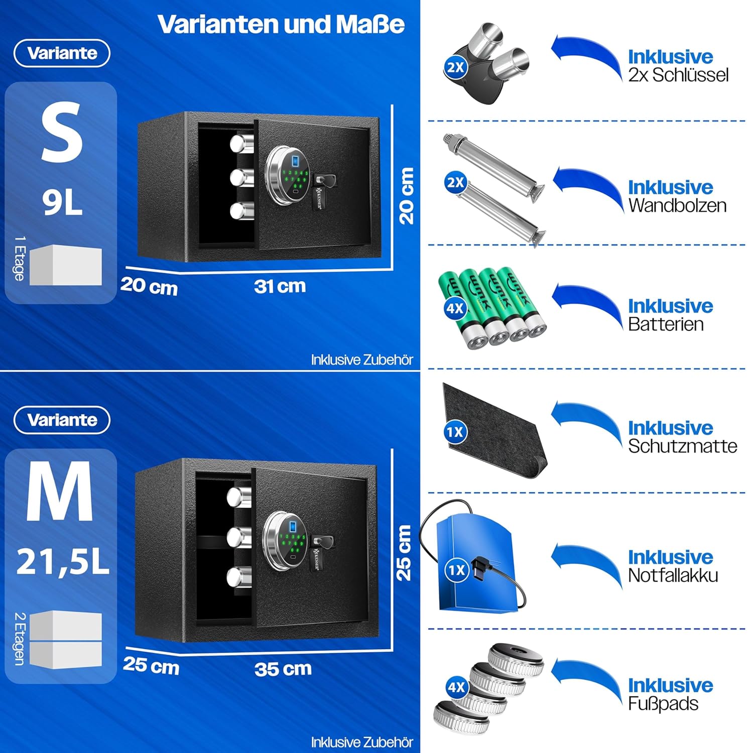 - 1x KESSER® Elektronischer Safe mit Fingerabdruck