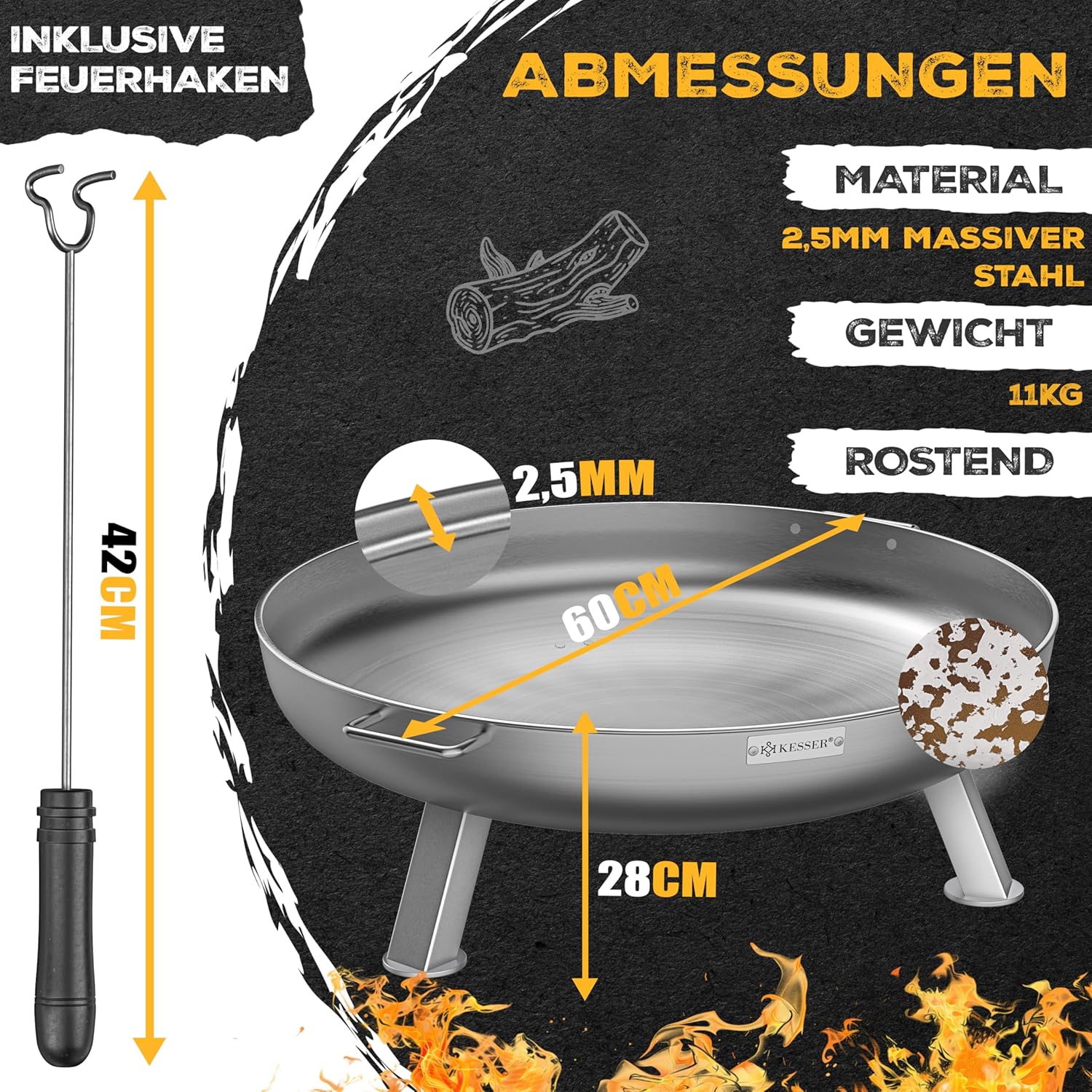 - 1x KESSER® Fire Bowl aus 2,5 mm starkem legiertem Stahl (60 cm Durchmesser)