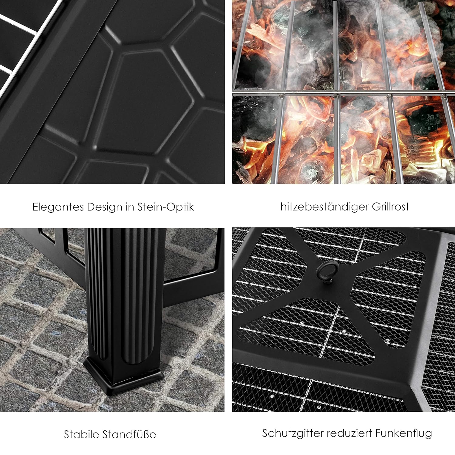 - Lieferumfang: Feuerkorb, Grillrost, Grillzangen, Funkenfang-Deckel, Schutzhülle