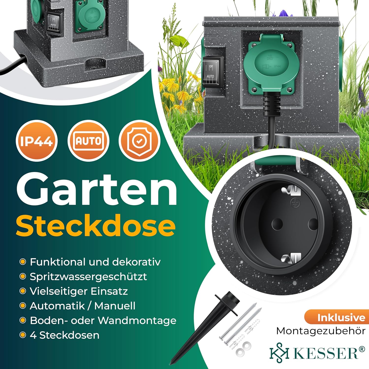 KESSER® Gartendosen-Steinoptik mit 4 Steckplätzen – Die intelligente Outdoor-Stromlösung für Ihren perfekten Garten