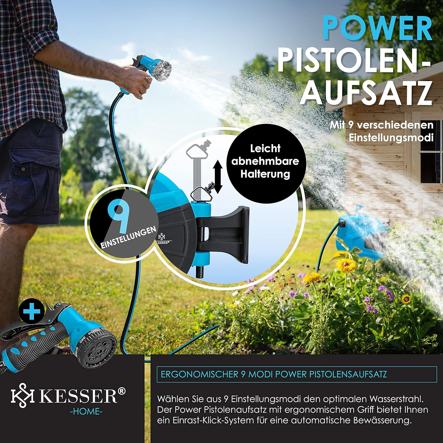 Die Zeiten mühseligen Schlauchaufrollens, störender Verknotungen und unbequemer Bückbewegungen sind endgültig vorbei. Der Kesser® Schlauchaufroller überzeugt durch sein durchdachtes System aus automatischer Schlauchrückholung, stabilem 180°-Swiveling-Wandhalter und einer vielseitigen Handbrause mit neun unterschiedlichen Strahlarten. Ob Sie das Beet bewässern, die Terrasse reinigen oder die Spielzeuge der Kinder nach dem Sandkastenspaß abspülen – dieses Set wird zum unverzichtbaren Begleiter im Außenbereich.