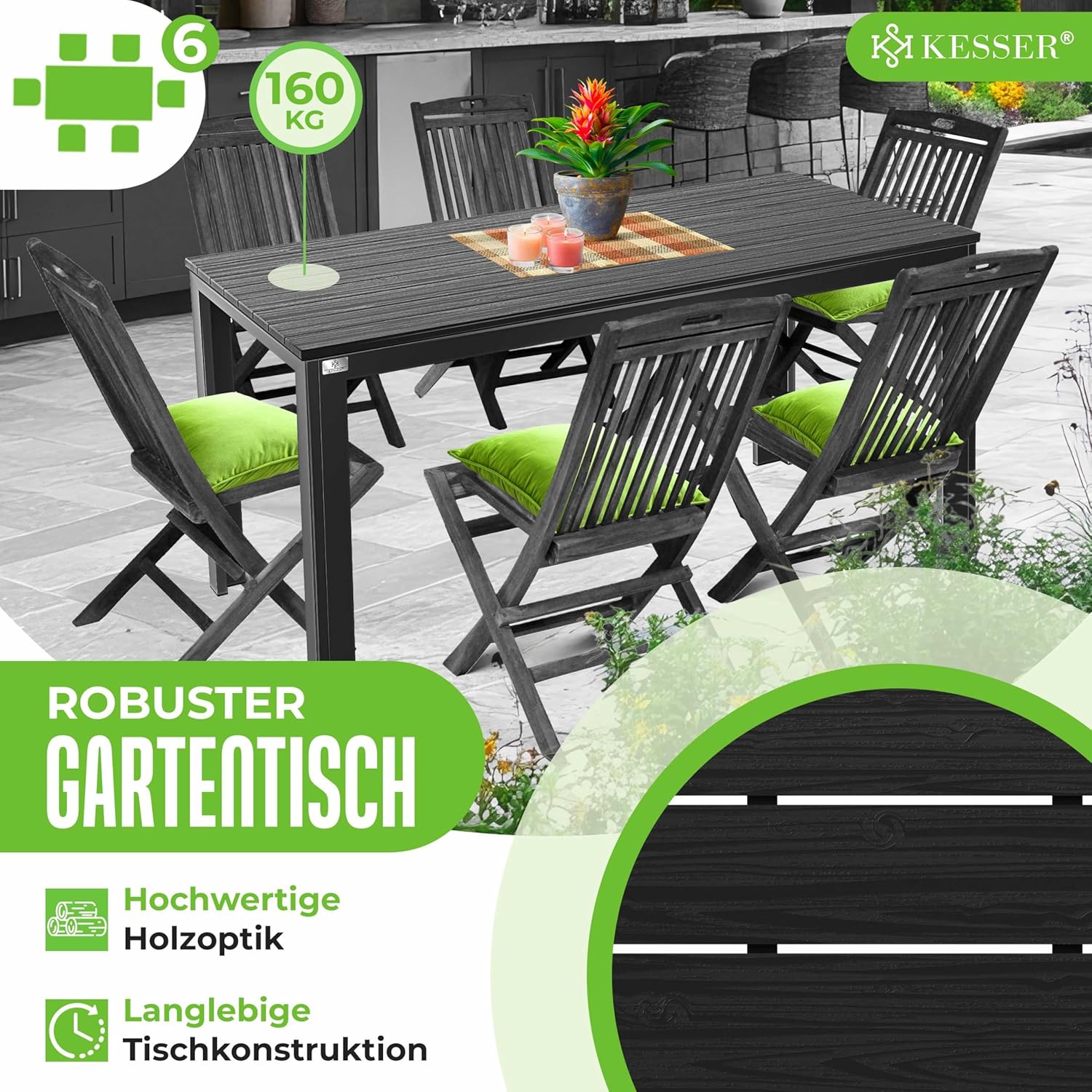 KESSER® Gartentisch 156×78 cm für 6 Personen wetterfest UV-beständig pulverbeschichtet