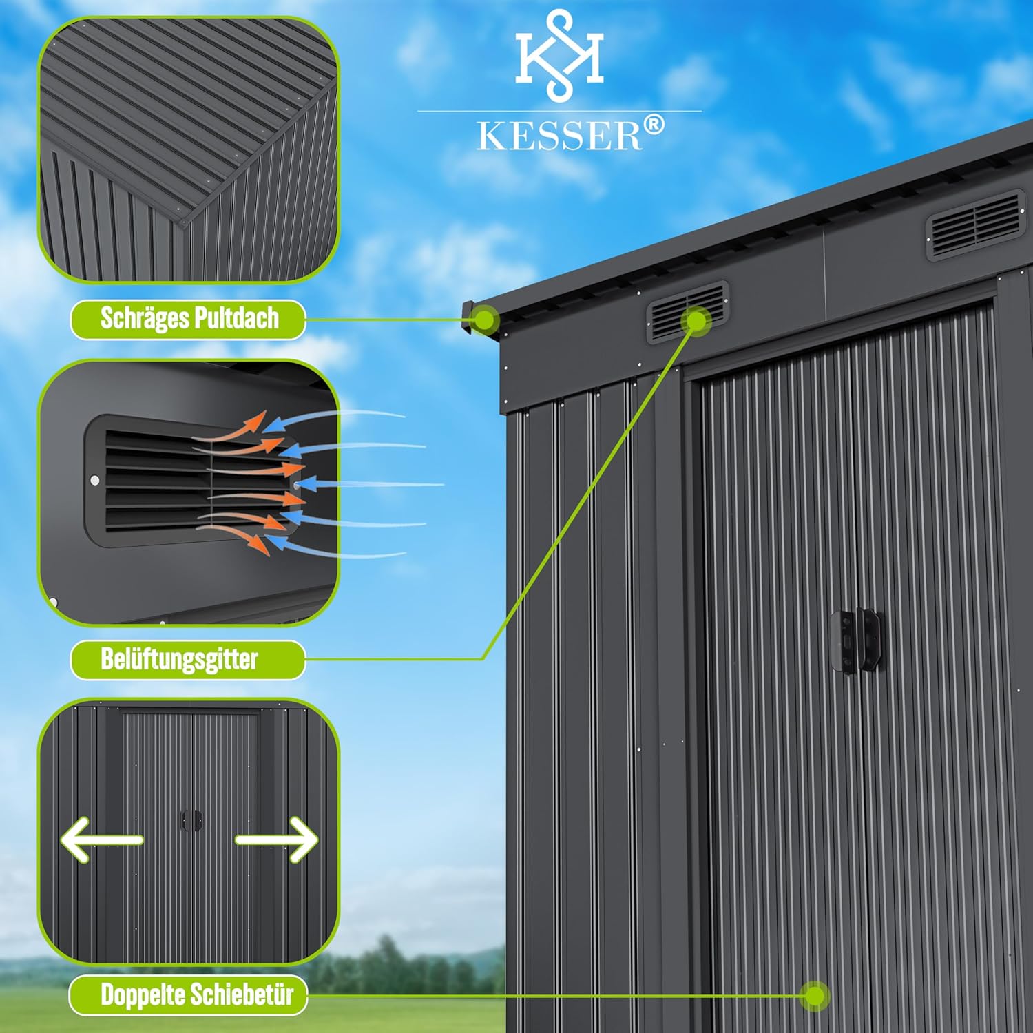 • 1 x KESSER® Tool Shed L Metall-Geräteschuppen (Bausatz)