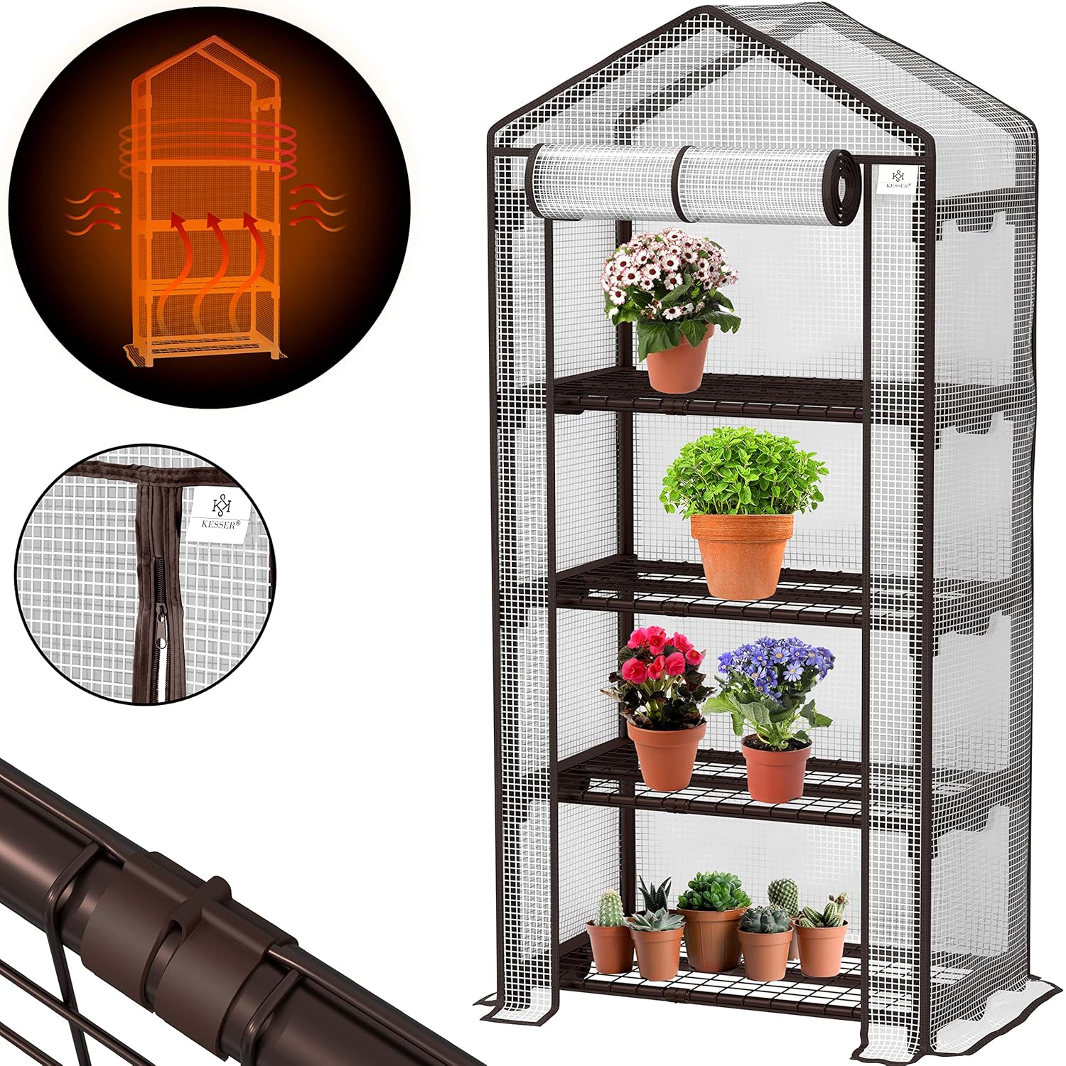 KESSER® Premium Folien-Gewächshaus mit 4 Etagen – 69 x 50 x 158 cm – Der intelligente Alleskönner für Garten, Balkon und urbanes Gärtnern