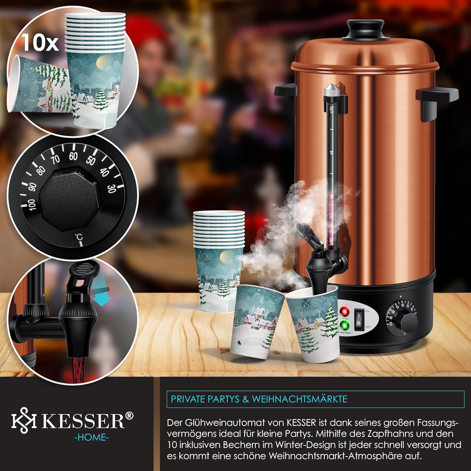 KESSER® Glühweinkessel 8L Edelstahl mit Thermostat & 10 Tassen