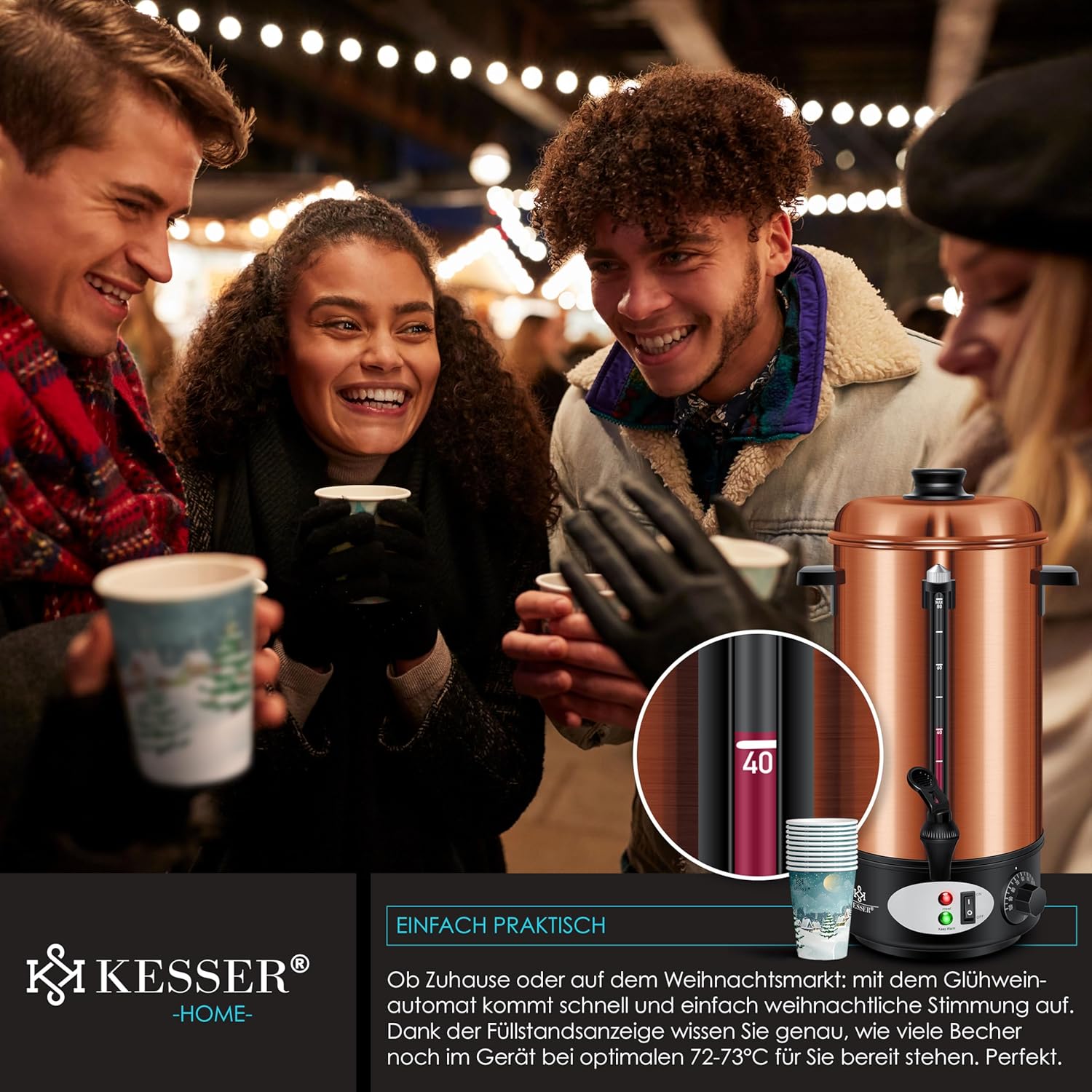 Der KESSER® Mulled Wine Kettle 8L ist mehr als nur ein Gerät – er ist ein Symbol für Gastfreundschaft, Wärme und gemeinsame Momente. Ob in der heimischen Küche, auf dem Weihnachtsmarkt oder bei der Party im Garten – dieses Gerät begleitet Sie durch die schönsten Stunden des Jahres und sorgt dafür, dass jeder Gast mit einem warmen Getränk und einem Lächeln im Gesicht nach Hause geht. Investieren Sie in Qualität, Langlebigkeit und Genuss – mit dem KESSER® KEG1800 holen Sie sich ein Stück professionelle Gastfreundschaft nach Hause.