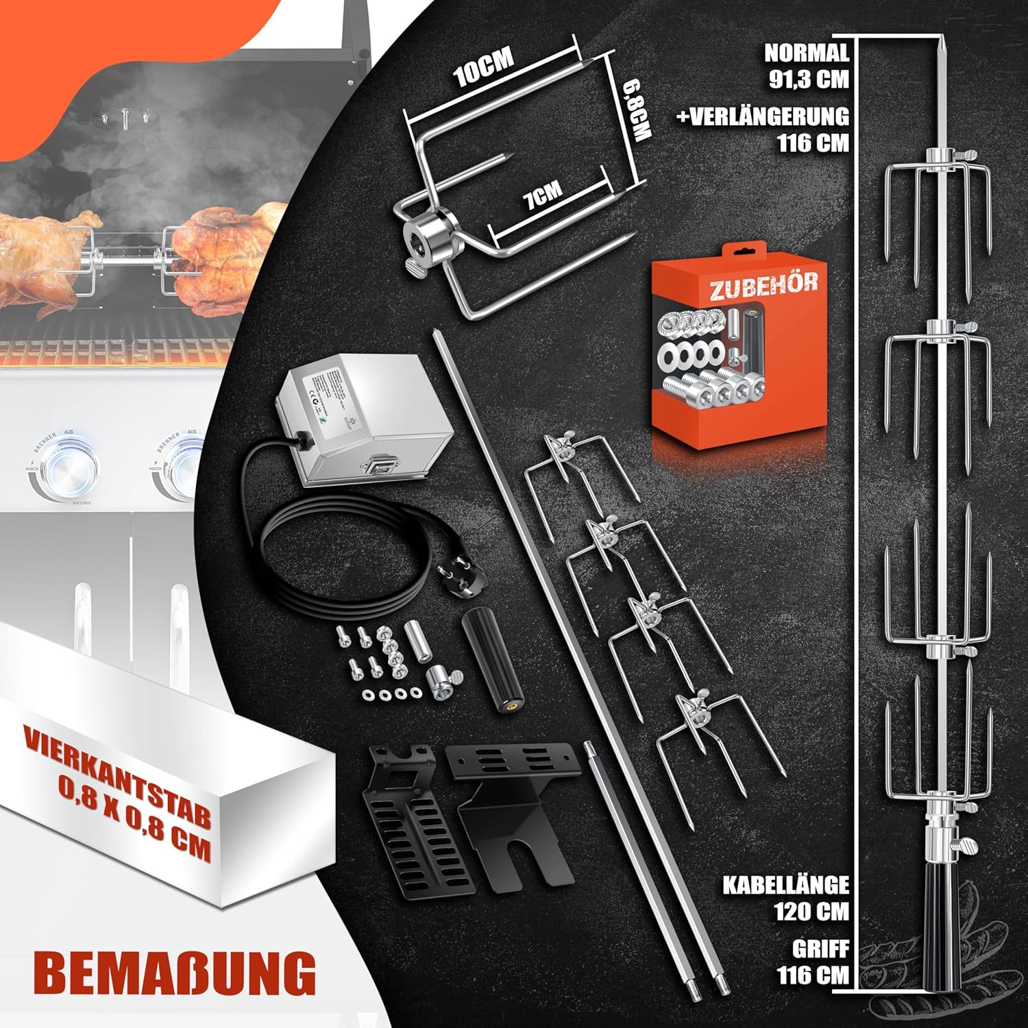 KESSER® Edelstahl-Grillschwenker Set 107 cm – Der ultimative Rotisserie-Genuss für Ihren Weber Spirit Gasgrill und jeden anderen Grill