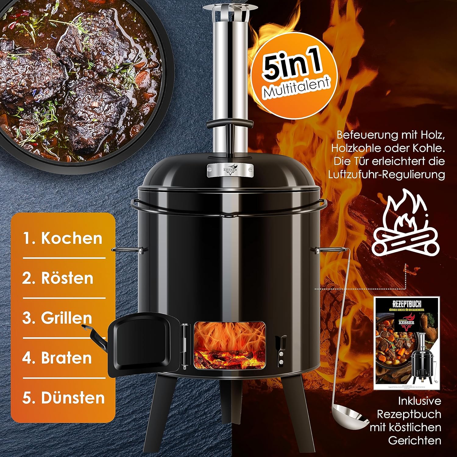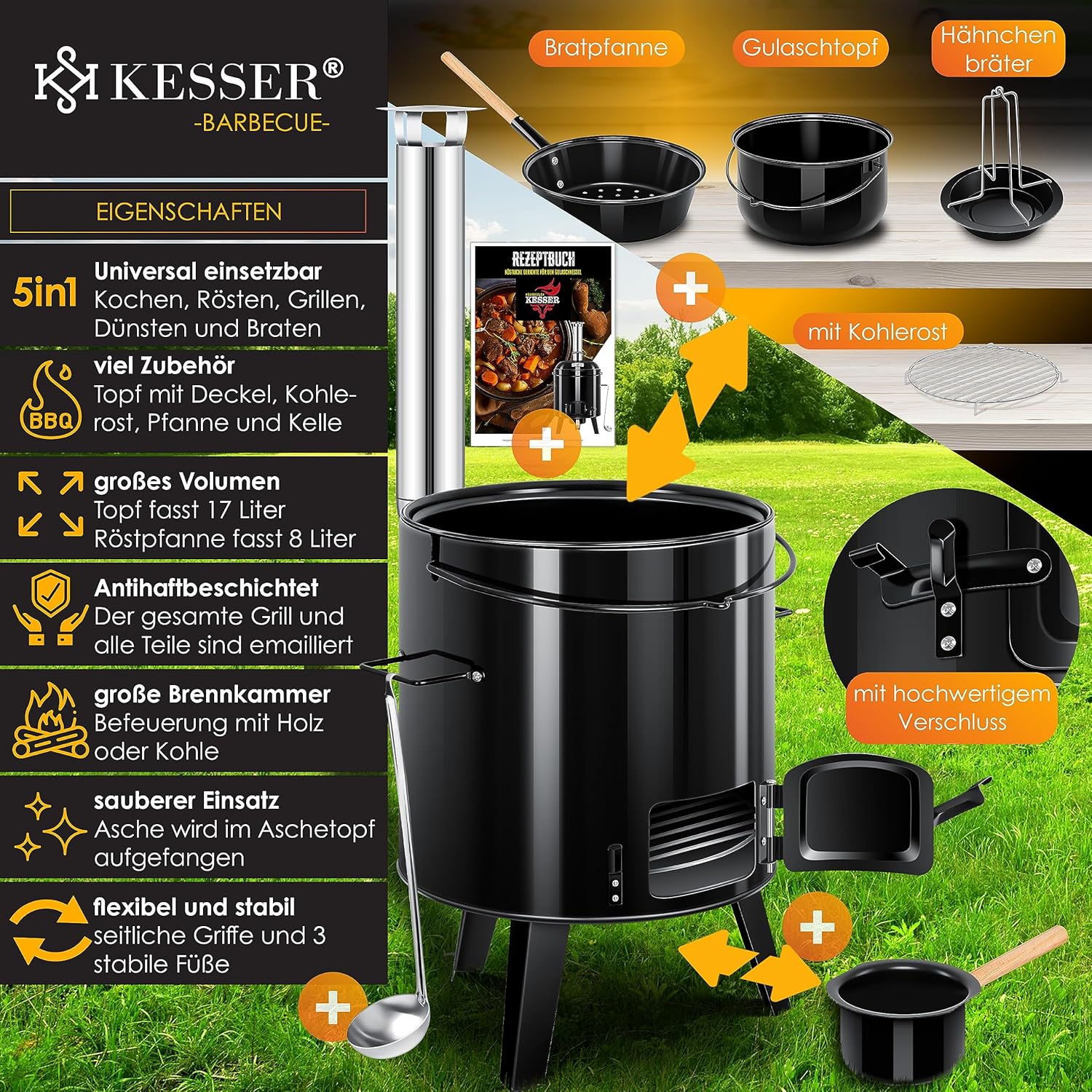 Entfache das Feuer und werde zum Helden der Gartenparty – mit dem KESSER® Goulash Cannon gelingt dir jedes BBQ-Erlebnis wie ein Profi! Dieser 17-Liter-Emblem-Topf mit Grillfunktion, Bratpfanne und Hähnchenaufsatz ist der ultimative Alleskönner für würzigen Gulasch, saftige Steaks, knusprige Hähnchen und selbst Glühwein unter freiem Himmel. Dank robuster 3-Fuß-Stabilität, praktischem Aschefang und optimierter Luftzufuhr durch…