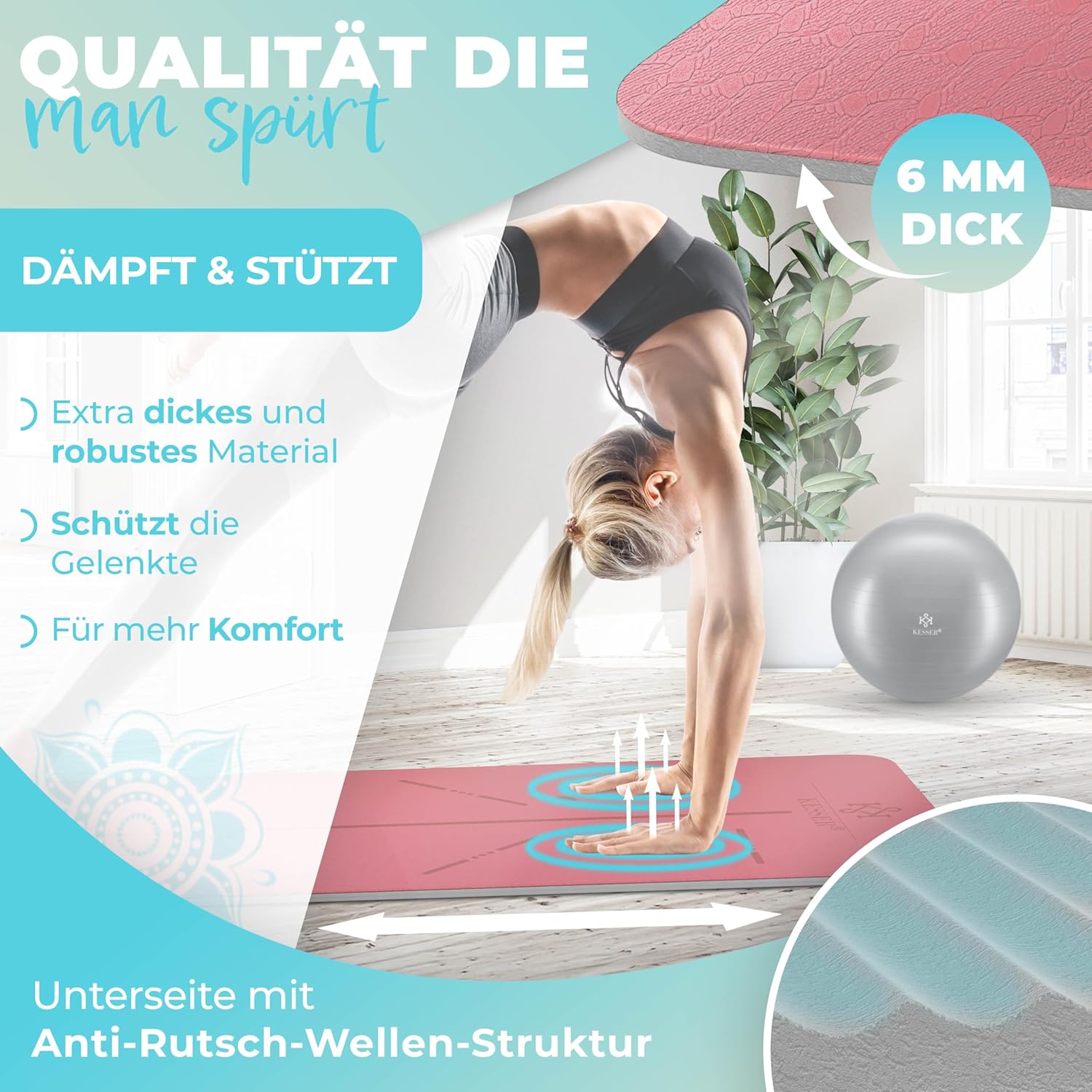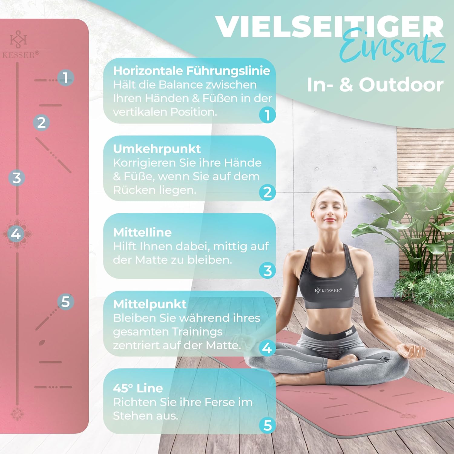 Kesser® Gymnastikmatte mit Tragegurt – Die Premium-Yogamatte aus TPE für Fitness, Yoga, Pilates & Gymnastik