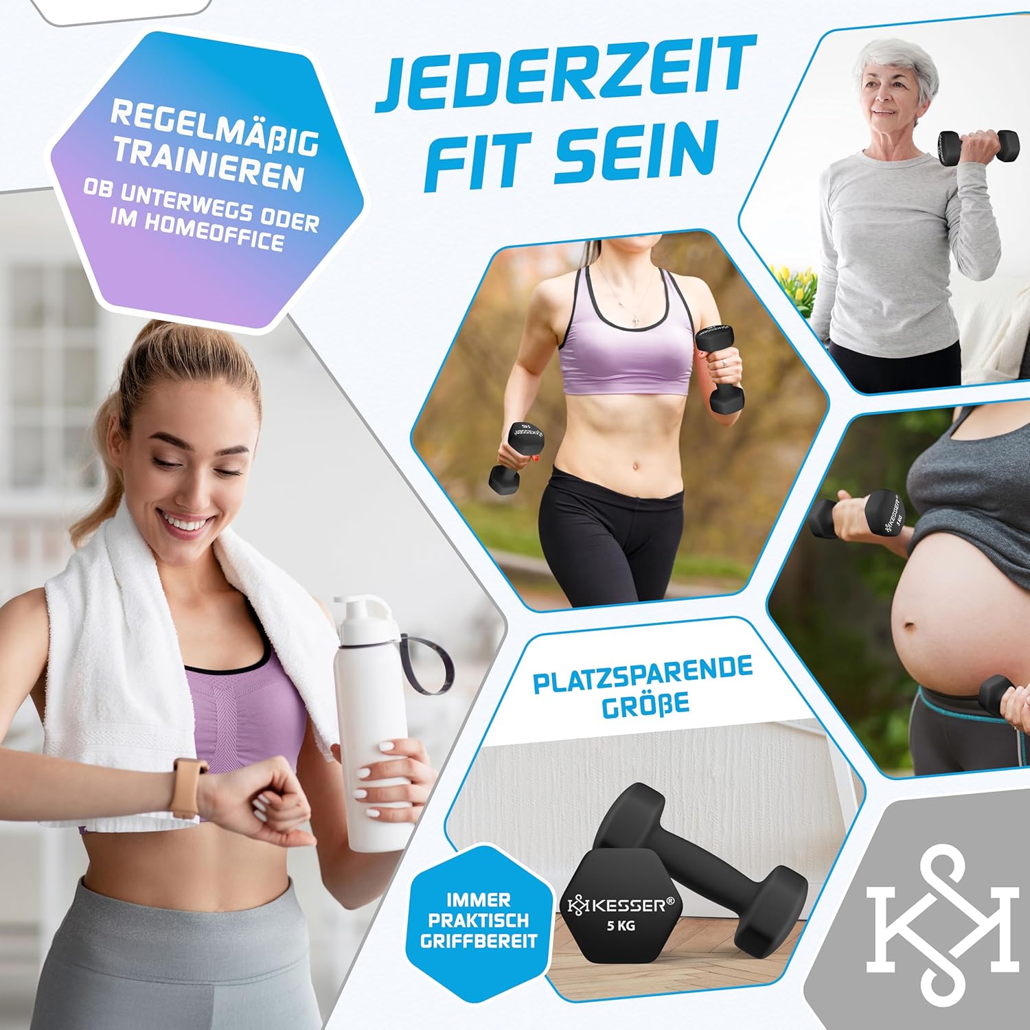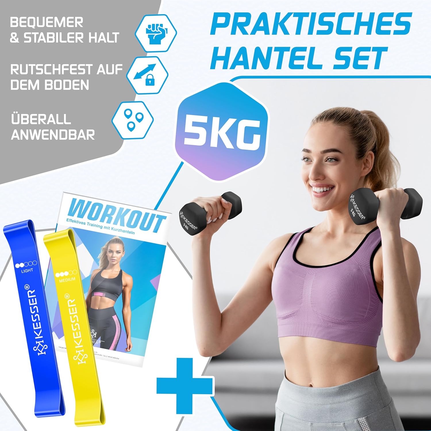 - 2 x 5-kg KESSER Kurzhanteln (Neopren beschichtet)
