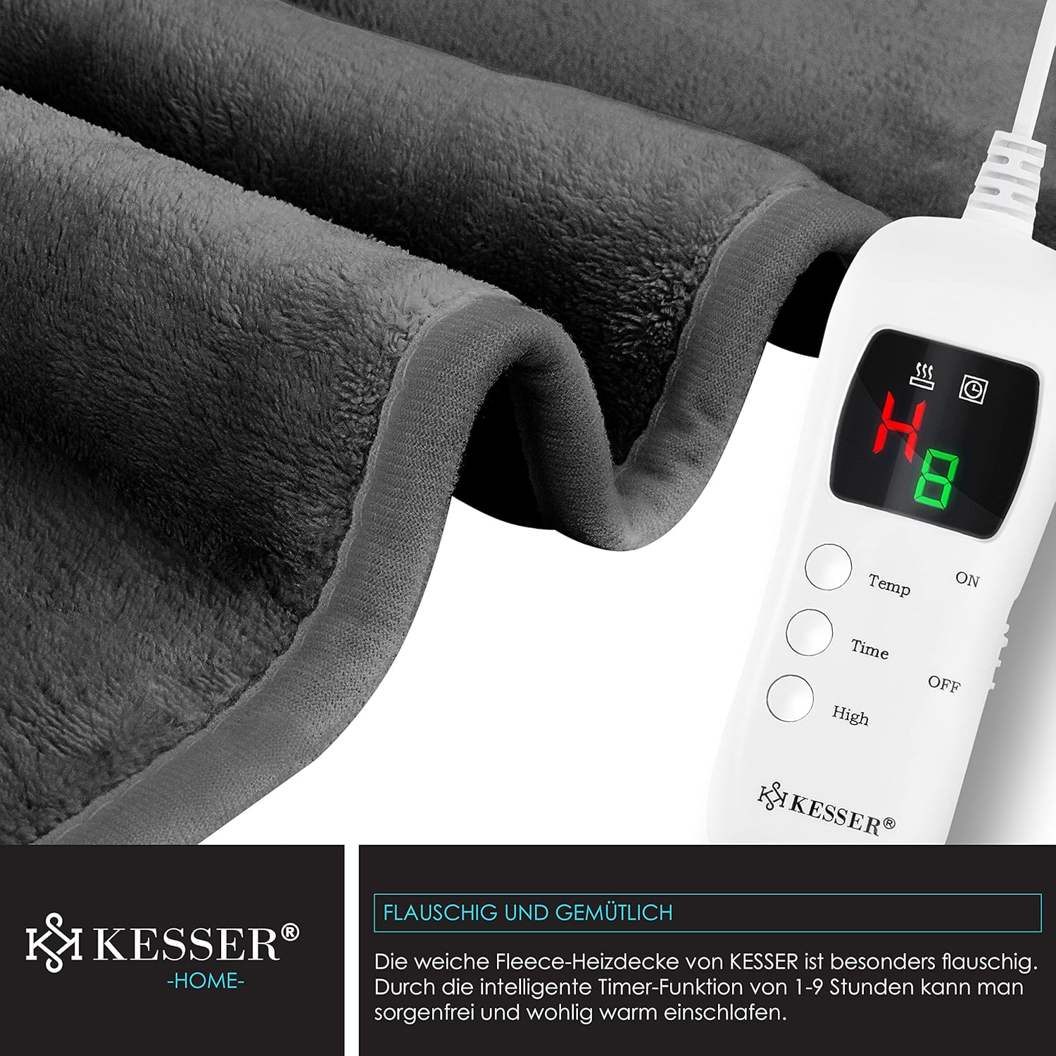 KESSER® Heizdecke 200×180 cm Plüsch 9 Stufen Timer TÜV-geprüft Anthrazit