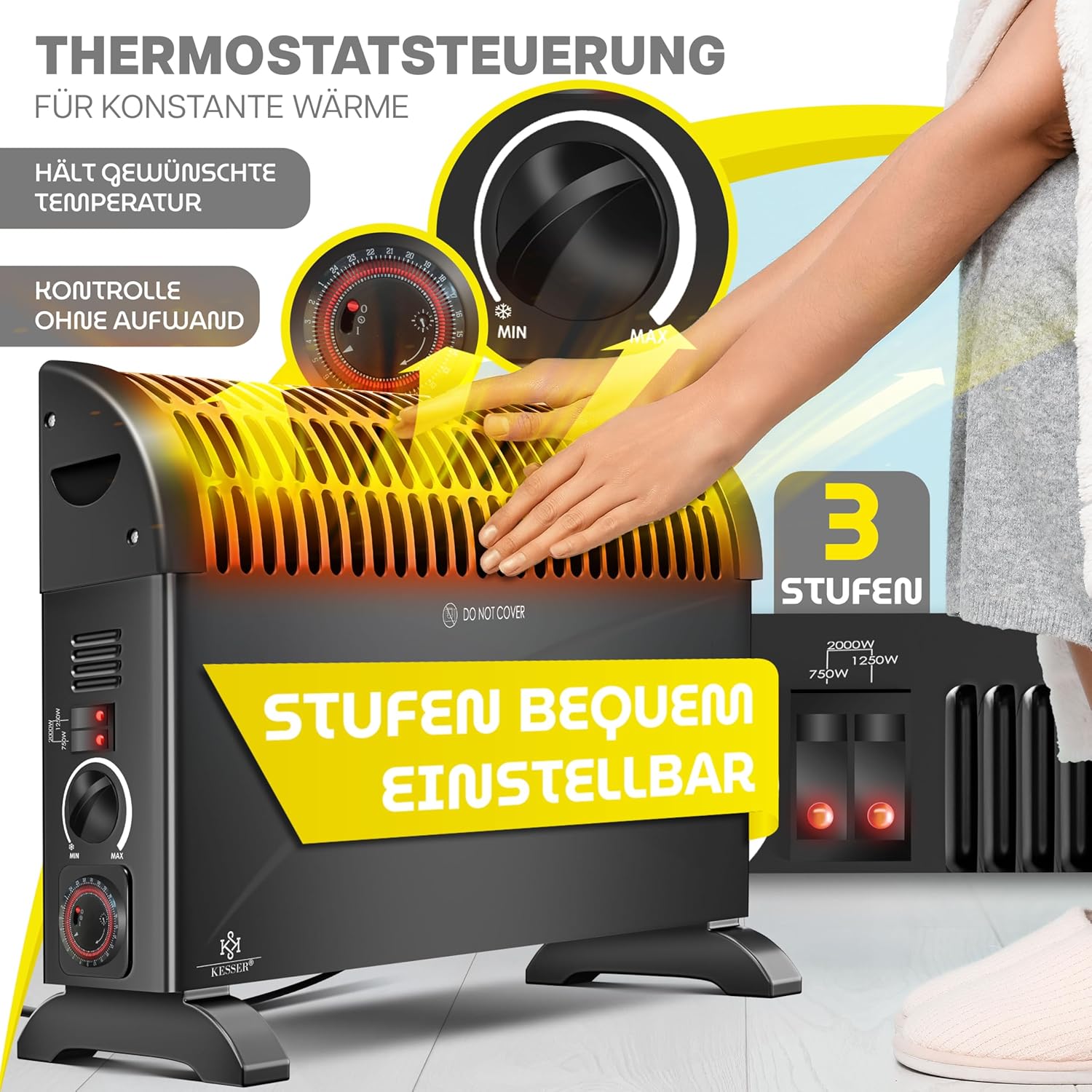 - 1x KESSER Convector 2000 Watt Heizgerät (schwarz)