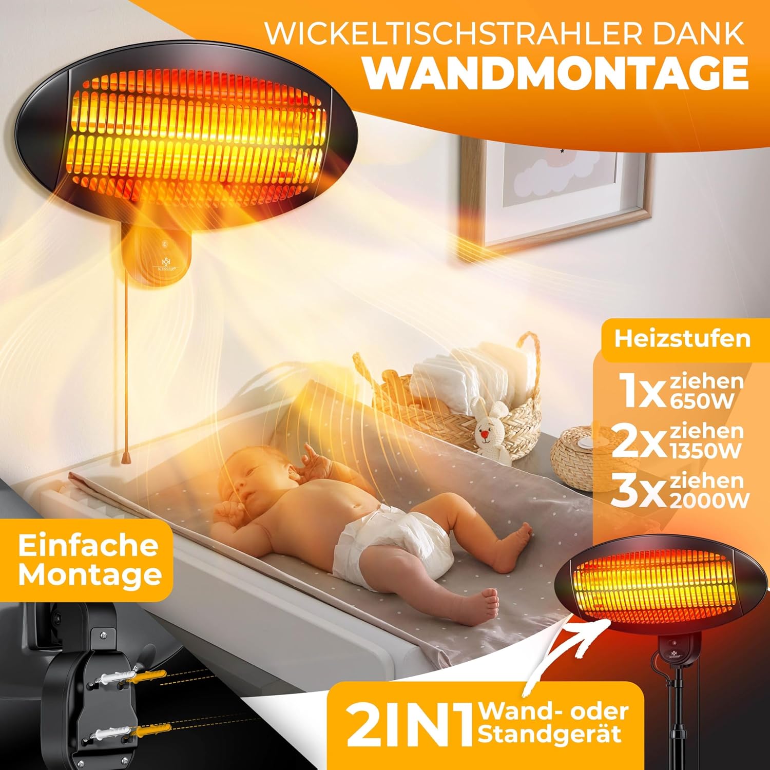 - Lieferumfang: Heizstrahler, Fernbedienung, Montagezubehör, Bedienungsanleitung