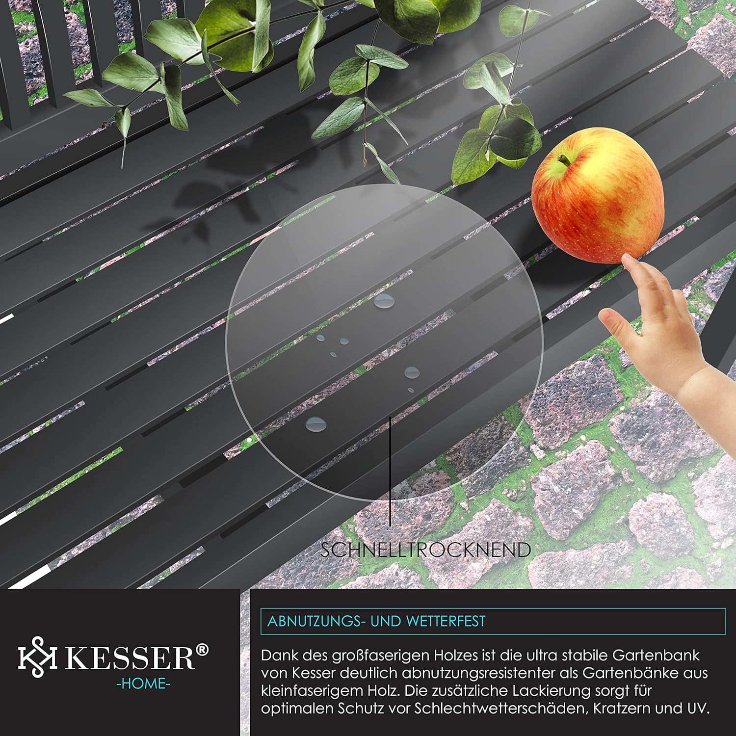 Die KESSER® Gartenbank aus Massivholz ist mehr als ein Möbelstück – sie ist ein Ort der Gemeinschaft, der Ruhe und der Freude. Ein Ort, an dem Erinnerungen entstehen, wo das Leben im Freien gefeiert wird. Mit ihrer Kombination aus Eleganz, Stabilität und Alltagstauglichkeit ist sie die ideale Wahl für alle, die Qualität, Design und Komfort schätzen. Investieren Sie in ein Stück Natur, das Ihr Zuhause bereichert – für viele Sommer, Herbsttage und gemütliche Stunden im Freien.