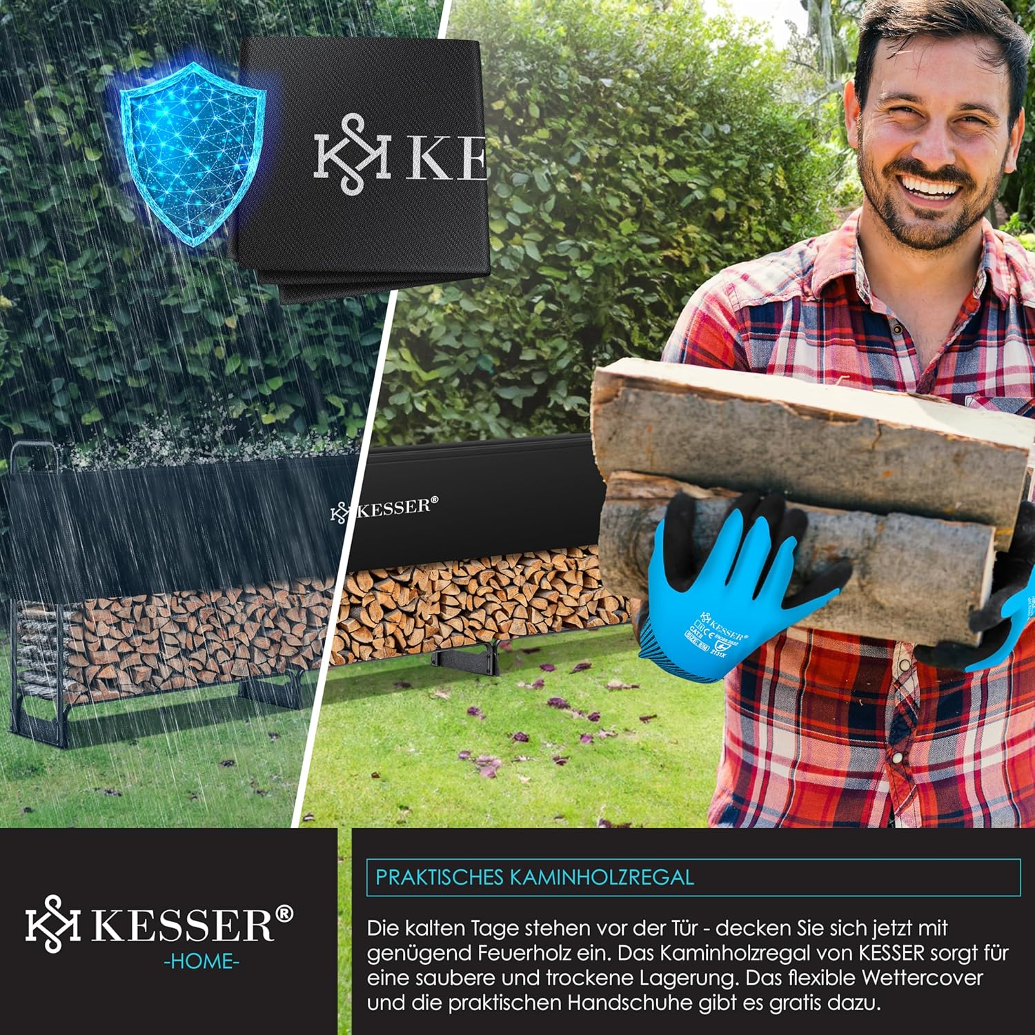 Seit Jahren steht KESSER® für durchdachte Produkte, die den Alltag erleichtern und gleichzeitig höchsten Ansprüchen an Langlebigkeit und Design genügen. Mit dem Firewood Rack Metal schaffen wir nicht nur ein Holzregal – wir schaffen die Grundlage für gemütliche Abende, für familiäre Zusammenkünfte, für das Behagen zu Hause. Denn gutes Holz beginnt mit guter Lagerung – und die beginnt mit KESSER®.