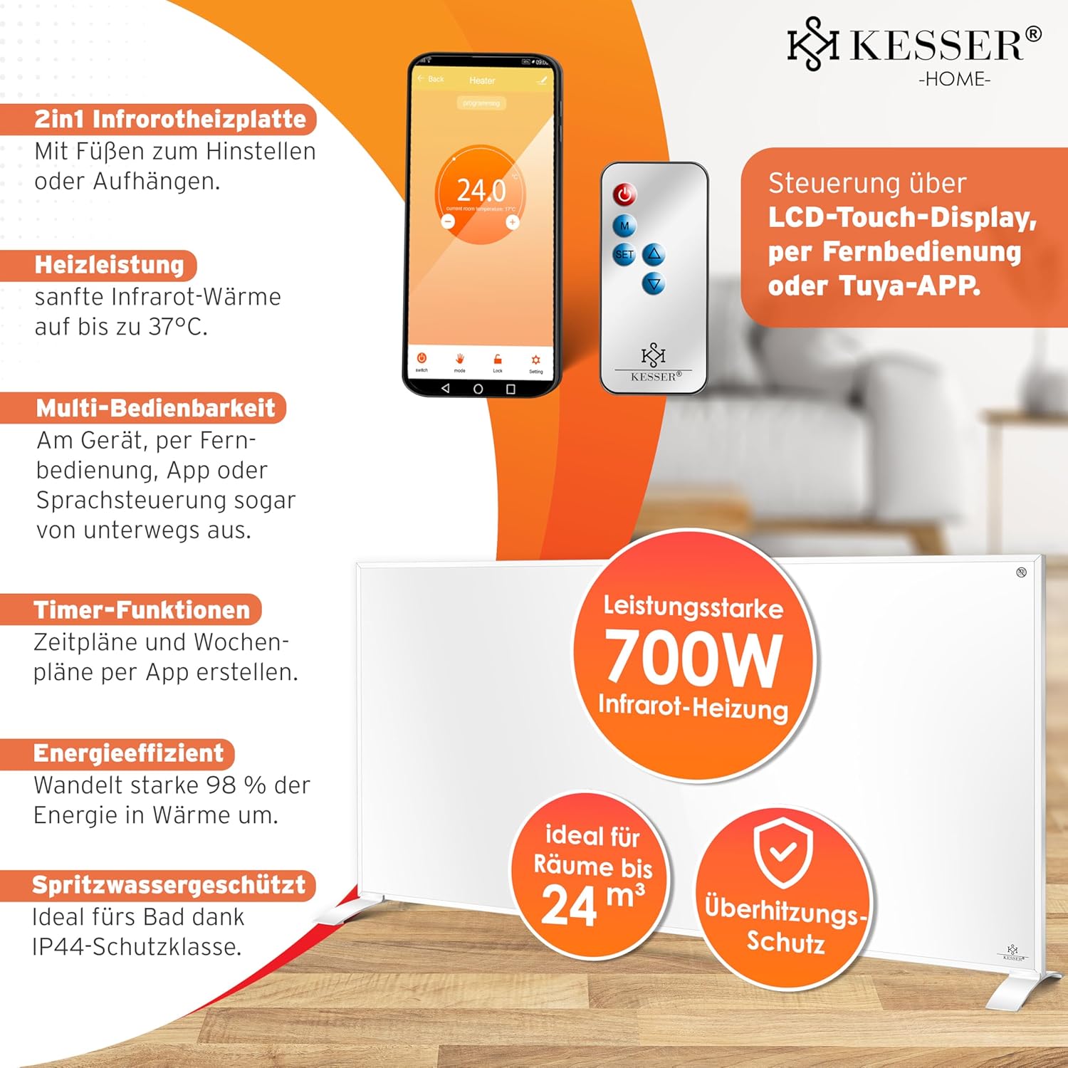 KESSER® Infrarot-Heizgerät 700W mit App-Steuerung, Thermostat & Fernbedienung