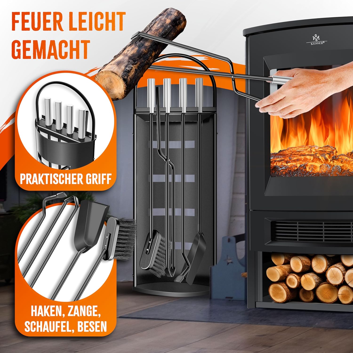 Kesser® 5-teiliges Kaminzubehör-Set – Modernes Design, elegante Funktionalität für Wärme, Gemütlichkeit und Ordnung