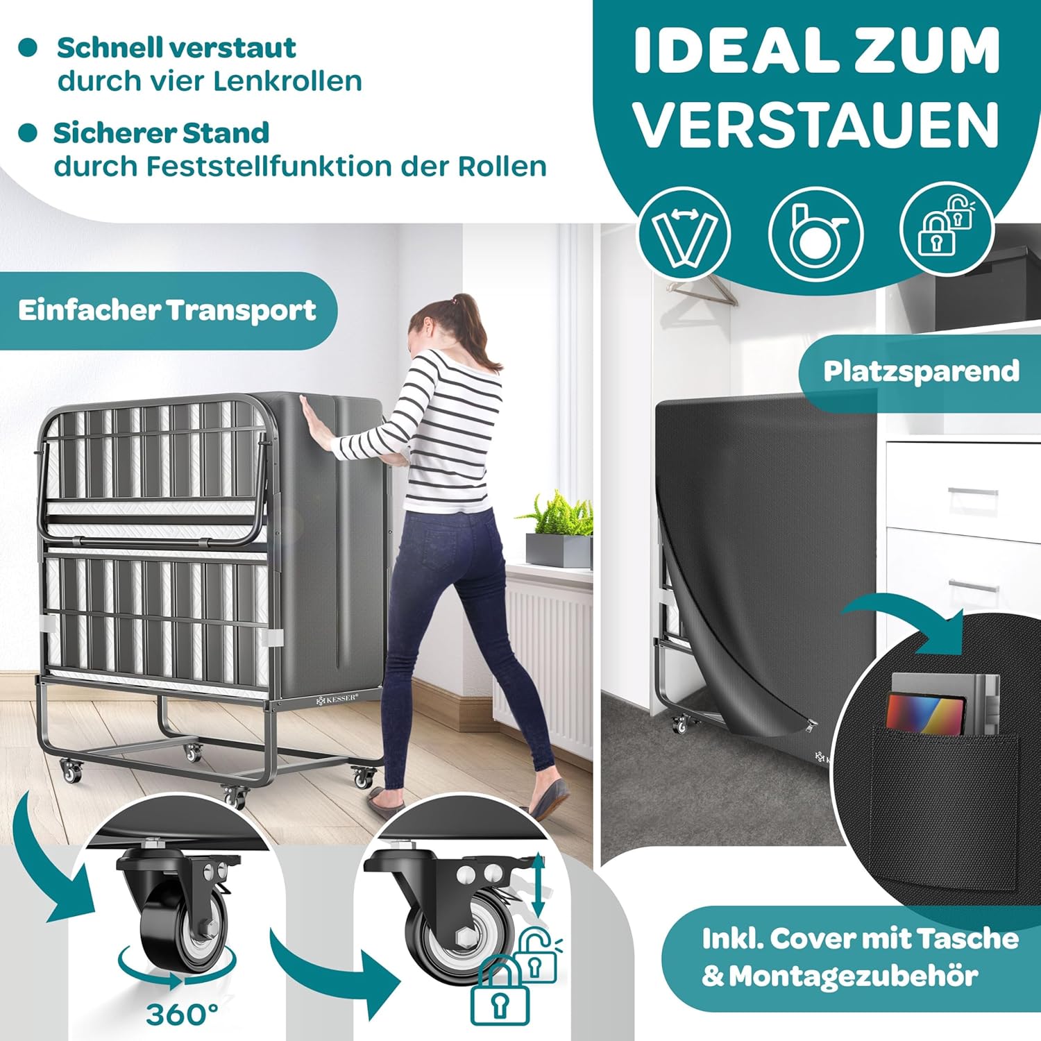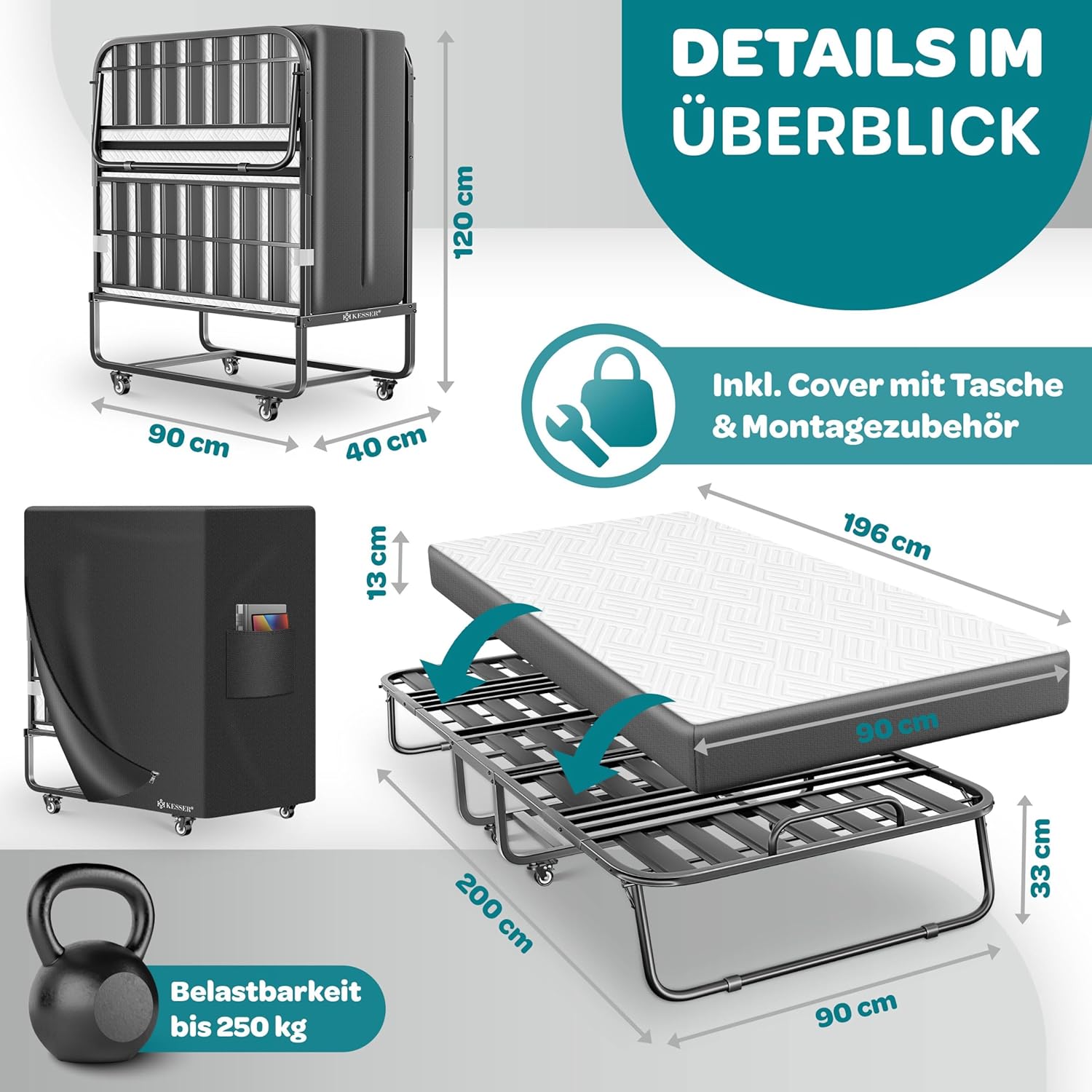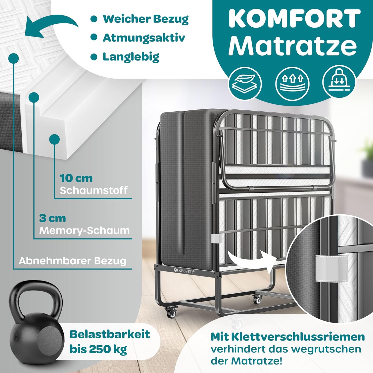 KESSER® Faltbett 200 x 90 cm – Die Premium-Lösung für komfortables Gästeschlafen mit Memory-Schaummatratze und robustem Metallrahmen