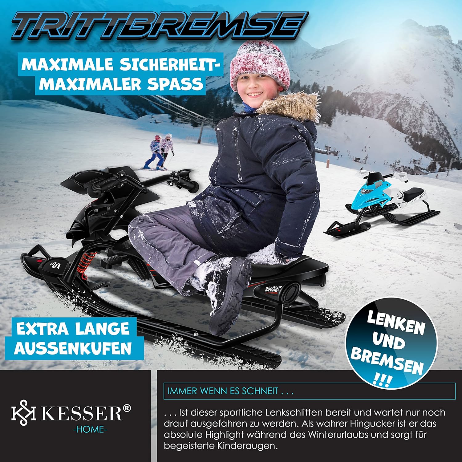 Der Kesser XR-525 ist mehr als ein Rodelschlitten – er ist ein Garant für unvergessliche Wintertage, gemeinsame Familienabenteuer und das strahlende Lachen von Kindern, die die Freude am Fahren entdecken. Ein Schlitten, der mitwächst, aushält und jedes Jahr aufs Neue begeistert.