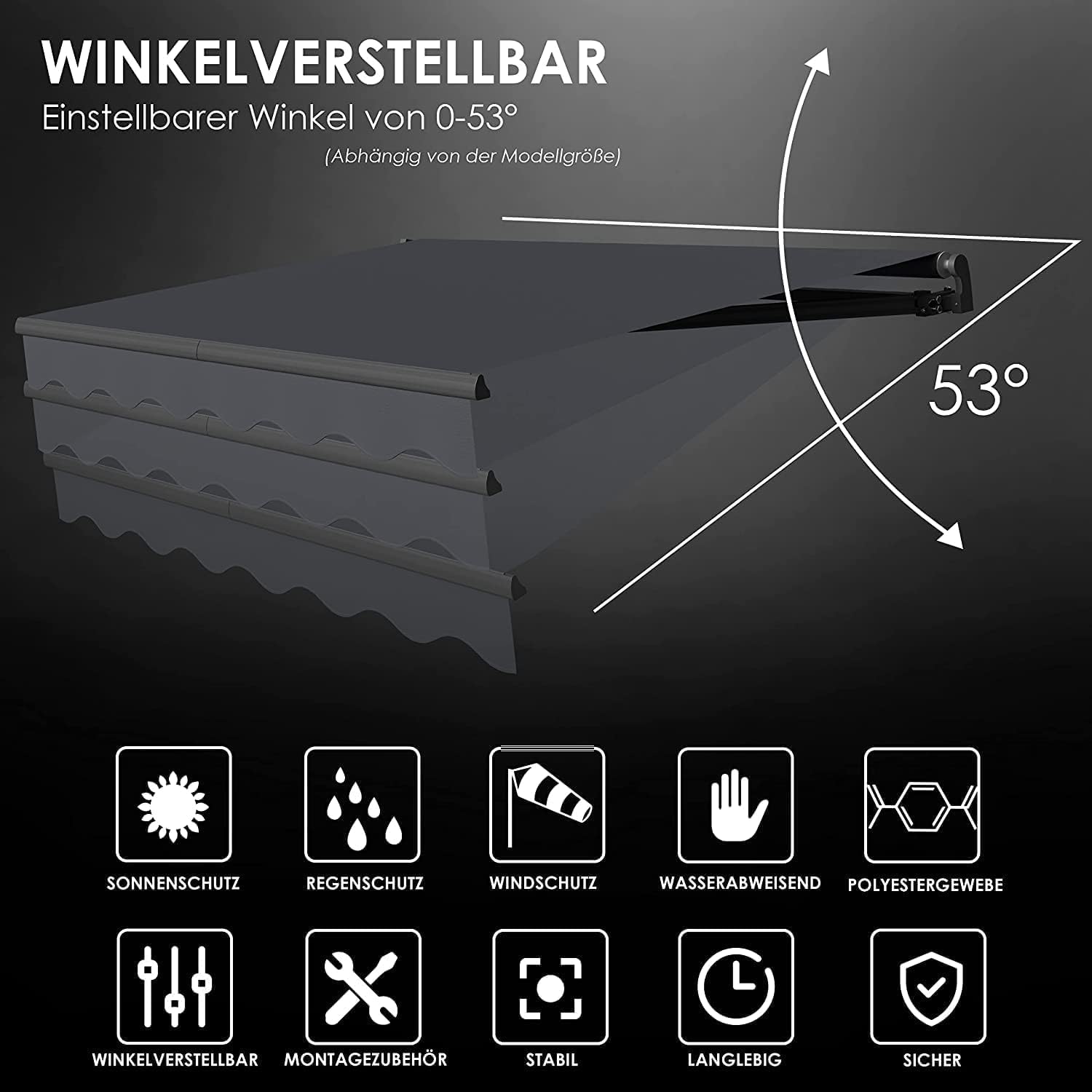 KESSER Markise 300×250 cm Aluminiumgestell anthrazit, wasserabweisend, Wandmontage