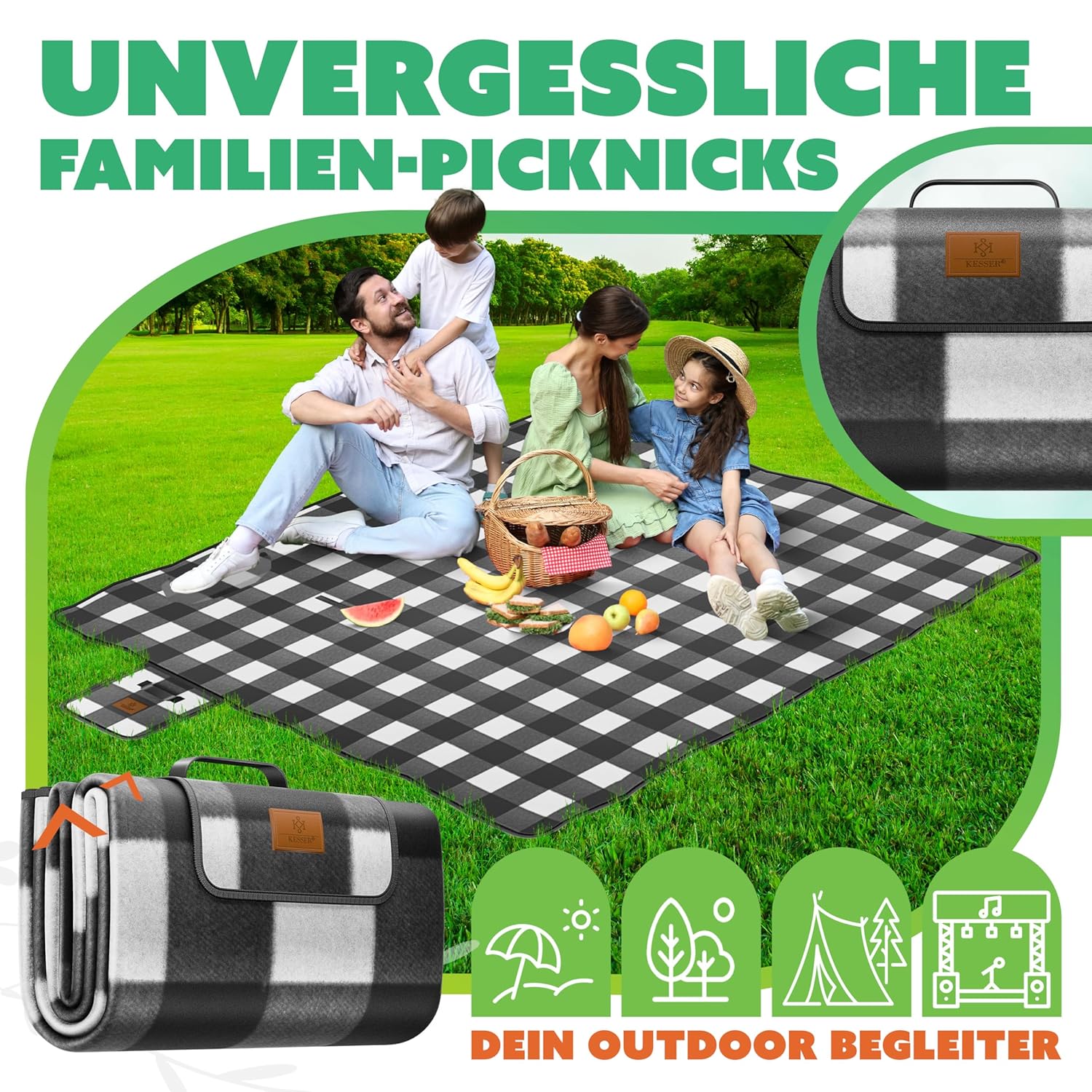 KESSER® Picknickdecke Campingdecke XXL – Die Premium-Lösung für Outdoor-Genuss mit Familie & Freunden