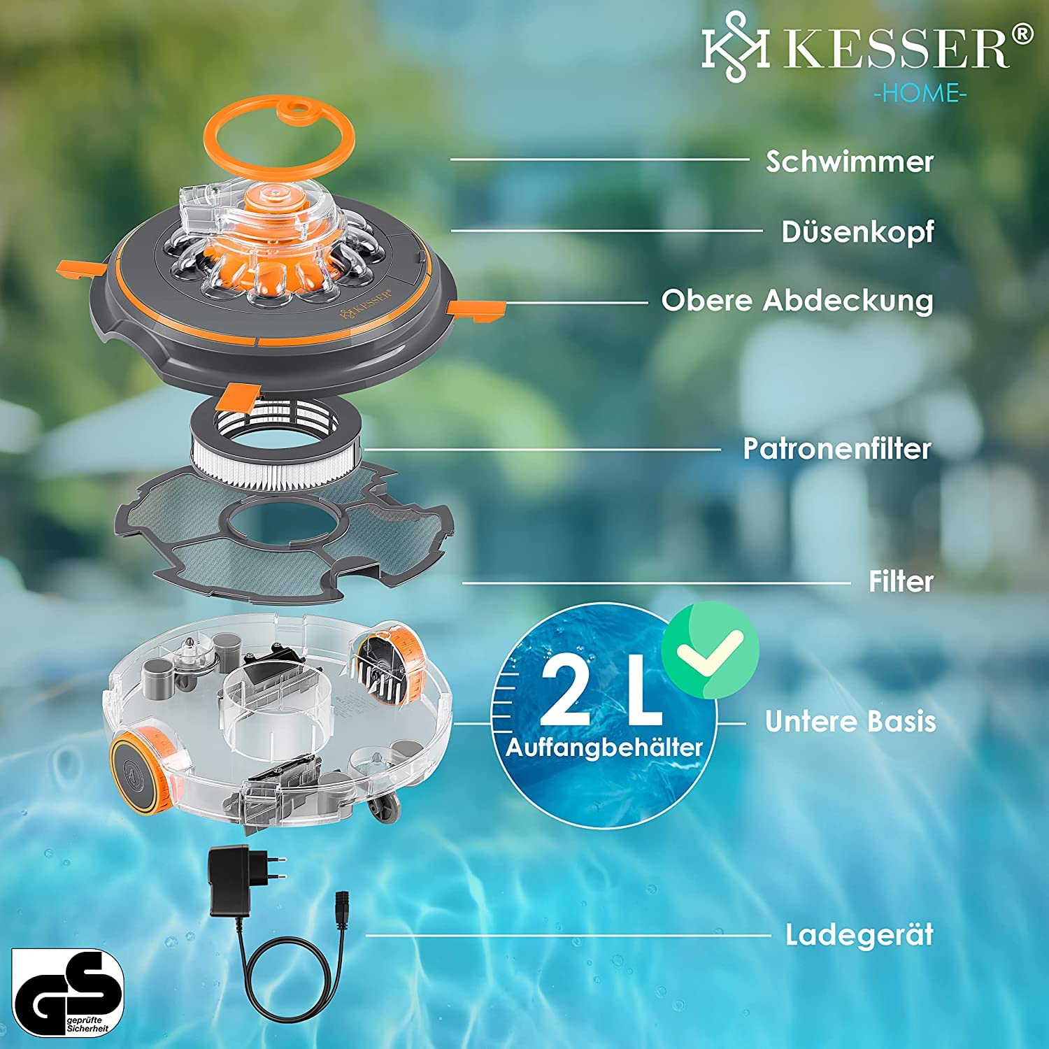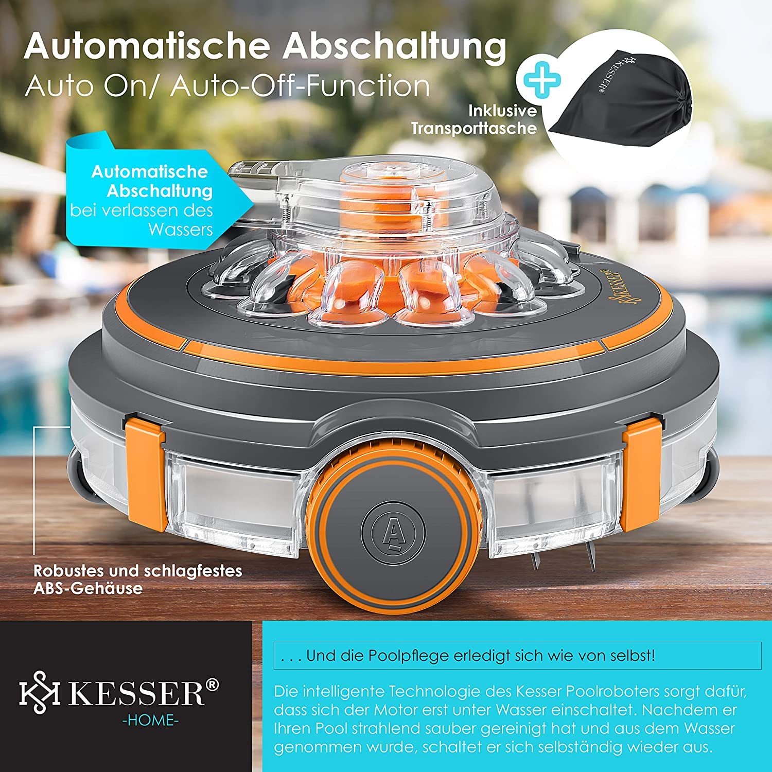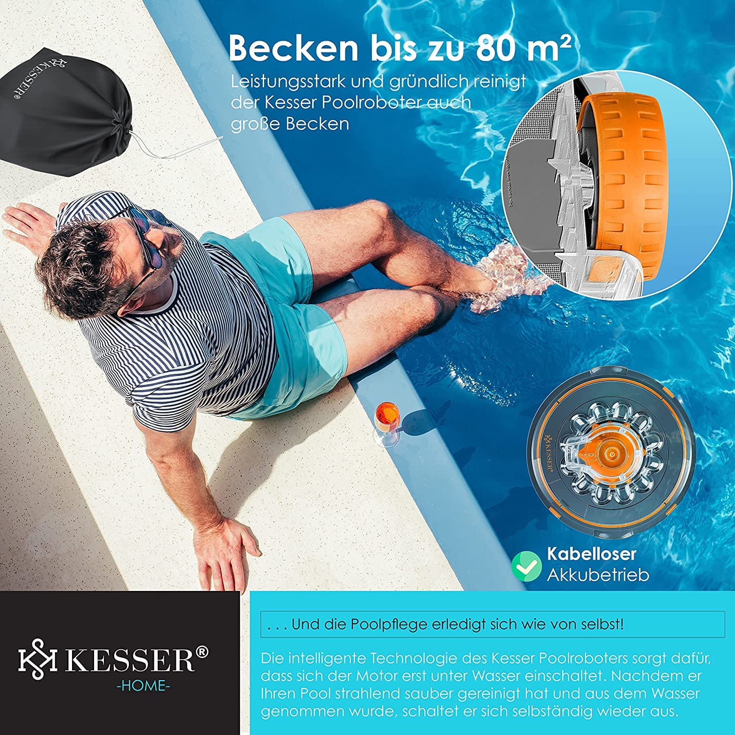 KESSER® Pool Robot Pool Cleaner Battery Aqua-9000 – Der intelligente Reinigungsprofi für makellose Pools bis 80 m²