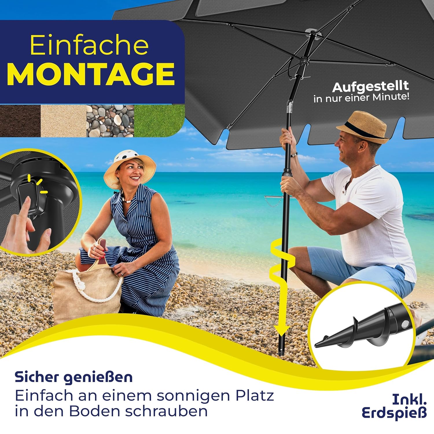 Die Kombination aus tief sitzendem Schwerpunkt, stabilem Aluminium-Mast und optionaler Zusatzbefestigung macht den Parasol zu einem sicheren Begleiter, selbst bei unbeständigem Wetter. Eltern können ihren Kindern erlauben, im Schatten zu spielen, ohne sich Sorgen um umkippende oder wegfliegende Elemente machen zu müssen.