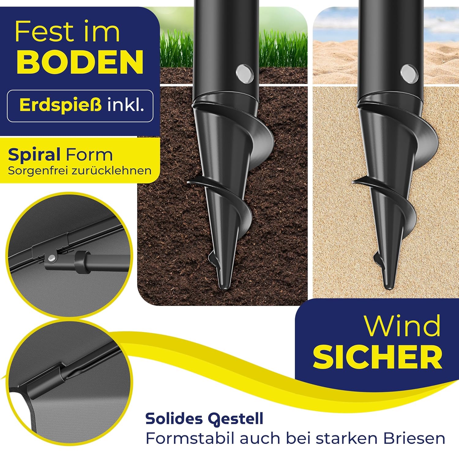 • Windfestigkeit: Ja, mit 2 Windschutzseilen