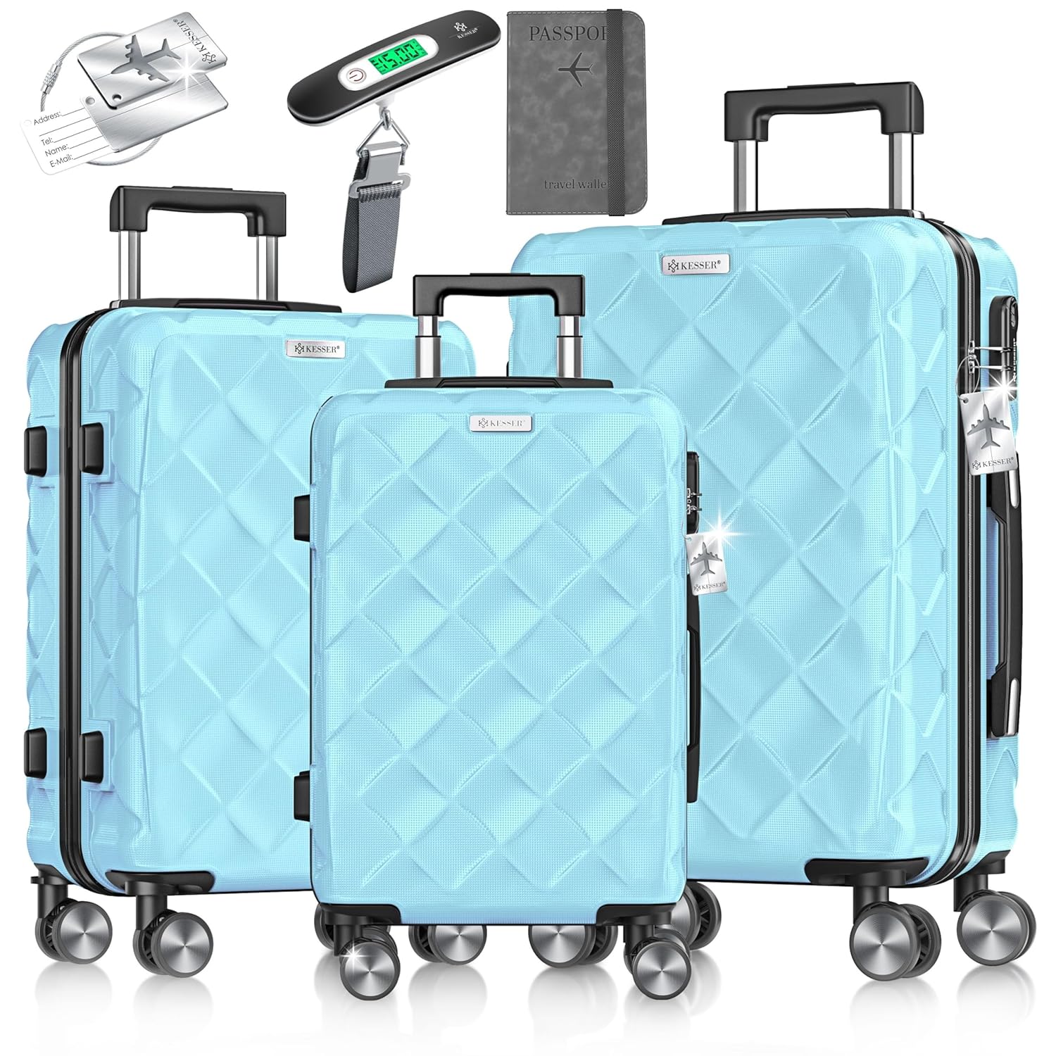 KESSER® Travel Suitcase Set – 3-teiliges Premium-Reisekoffer-Set mit Kombinationsschloss, integrierter Gepäckwaage & Reiseetui – Robuste ABS-Hartschale für sicheren, komfortablen Reisegenuss