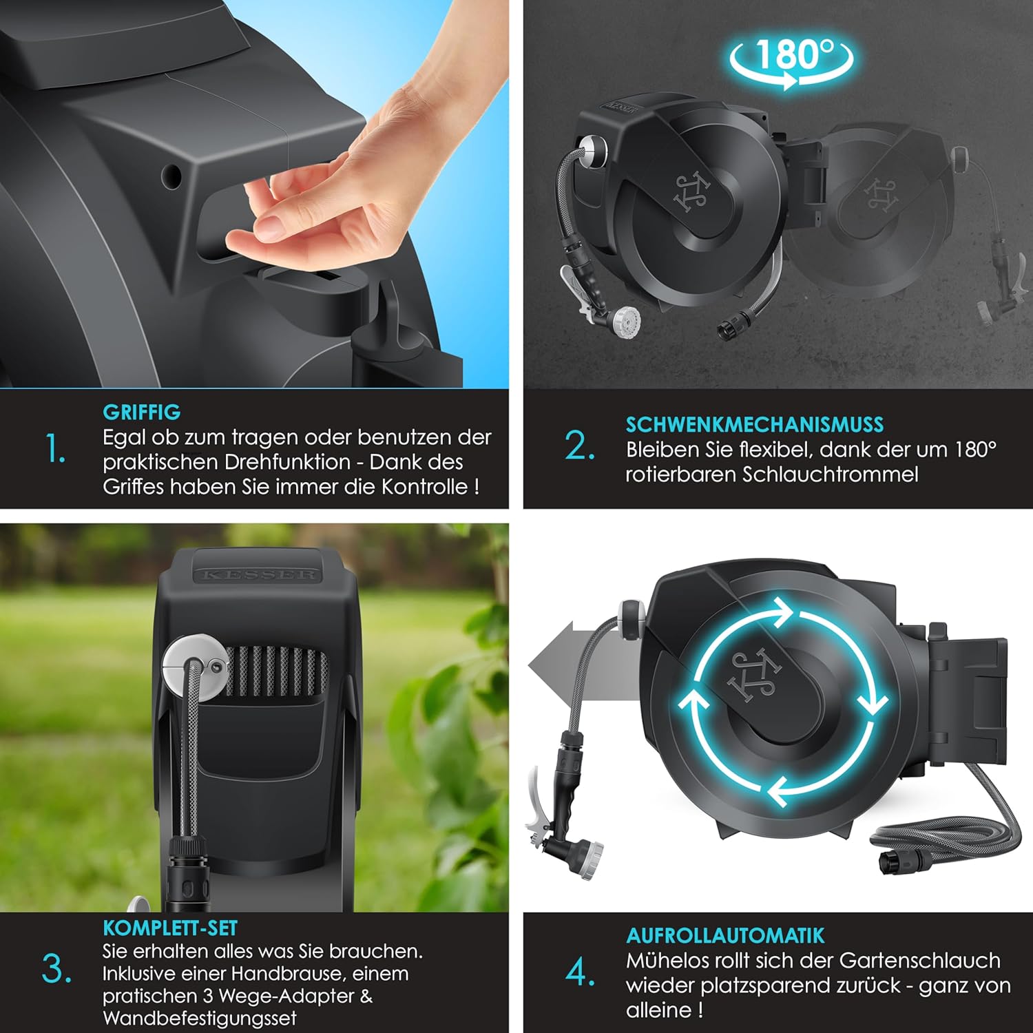 KESSER® Schlauchaufroller mit 20 m Gartenschlauch – Die intelligente Lösung für einen ordentlichen, sicheren und komfortablen Garten