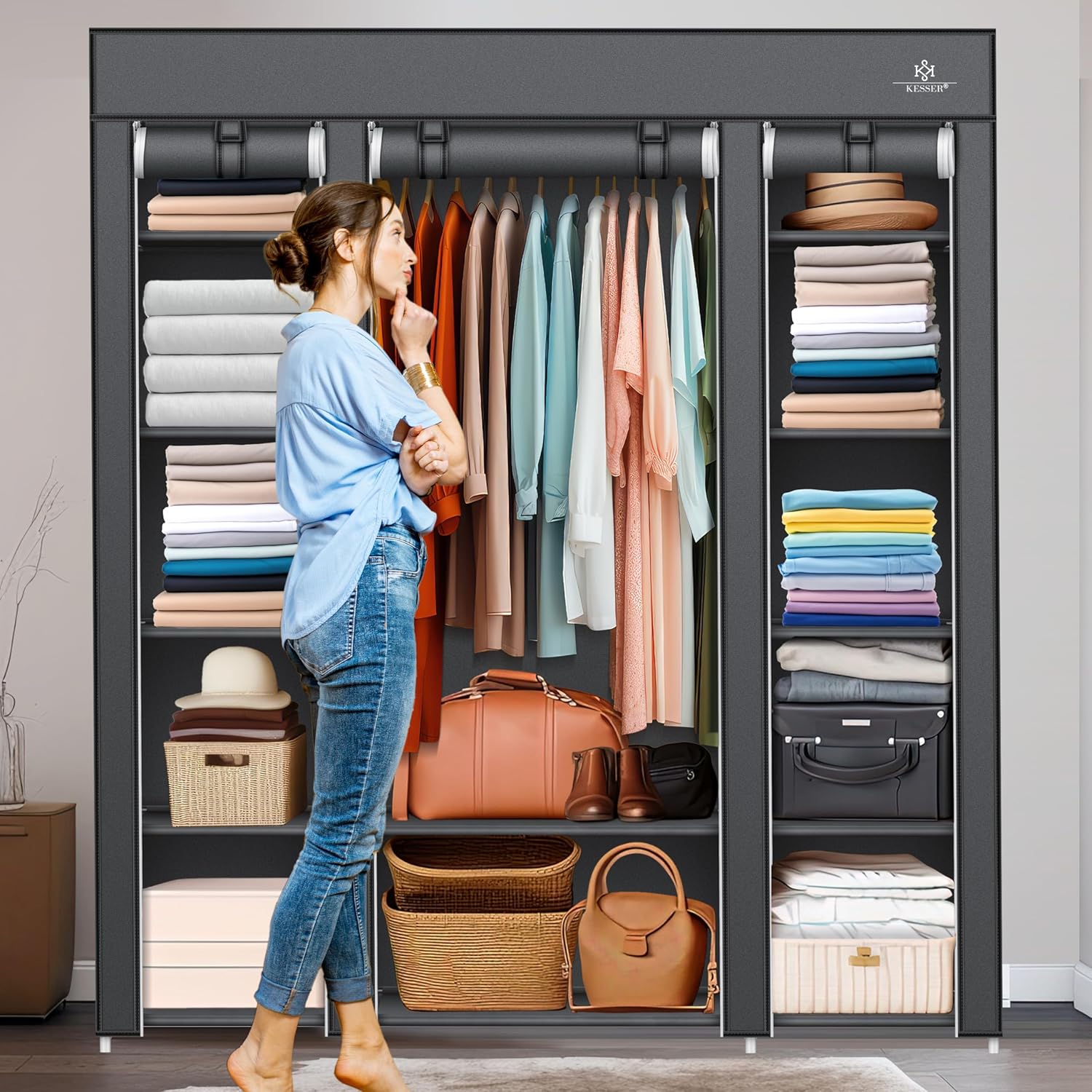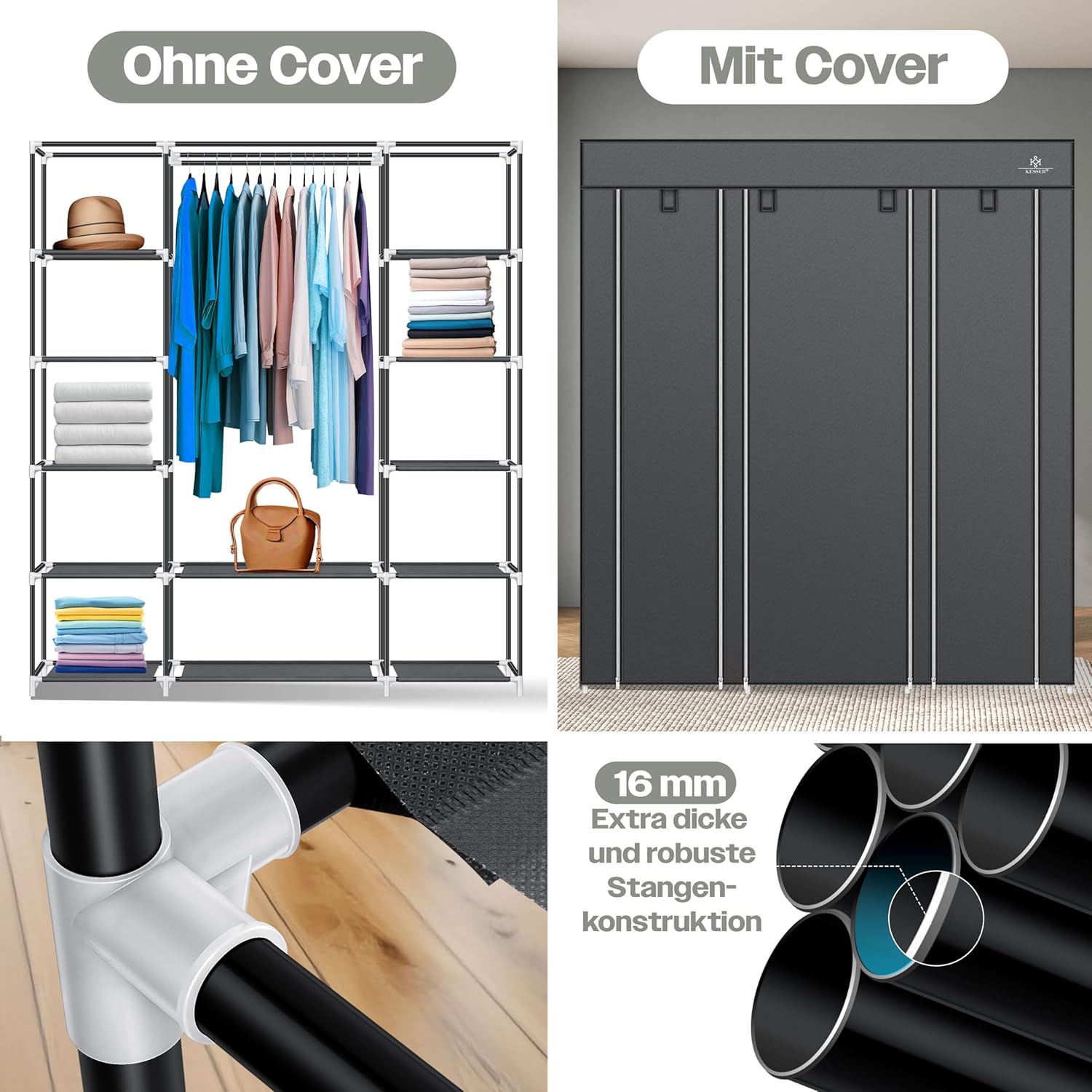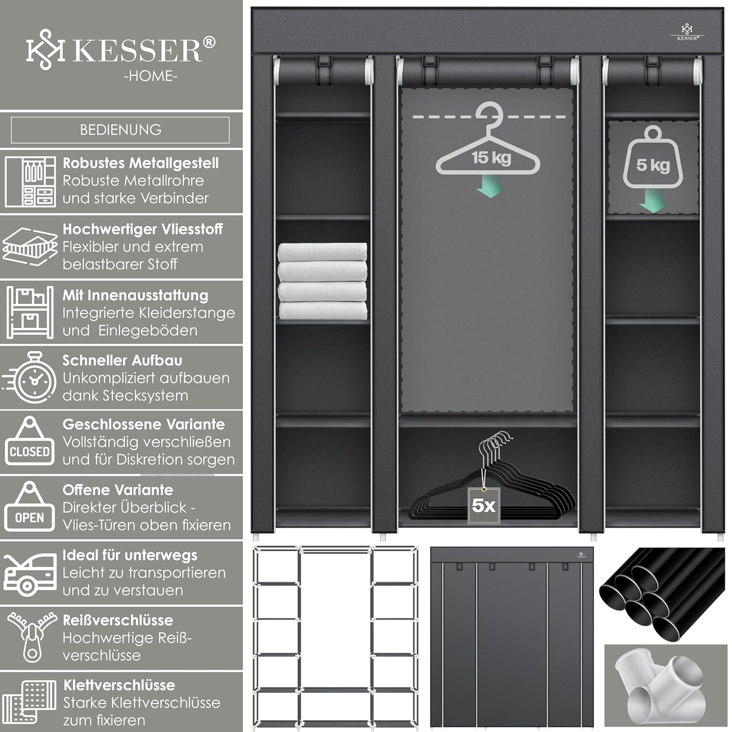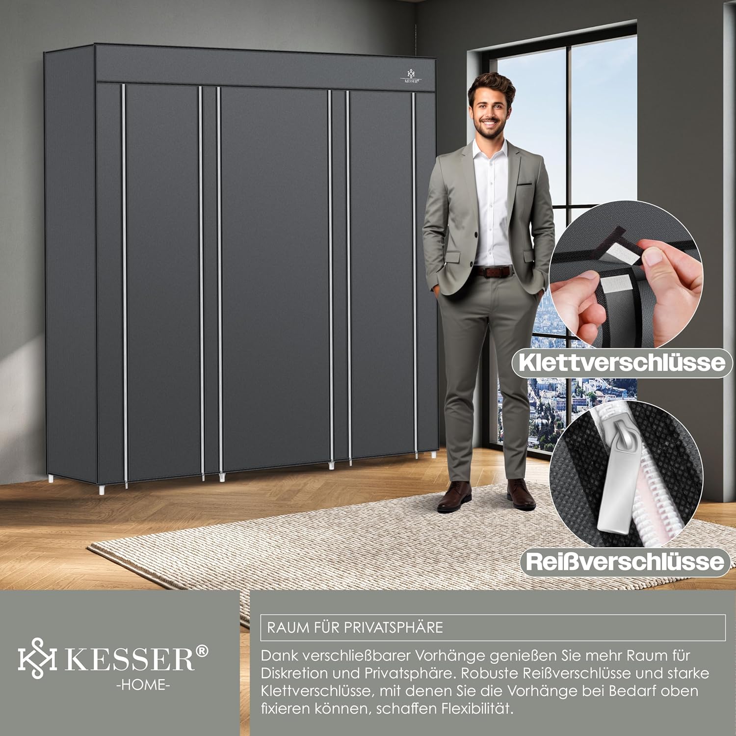 KESSER® Stabiler Stoffkleiderschrank mit Kleiderstange und Ablagefächern – Der elegante Alleskönner für modernes Wohnen