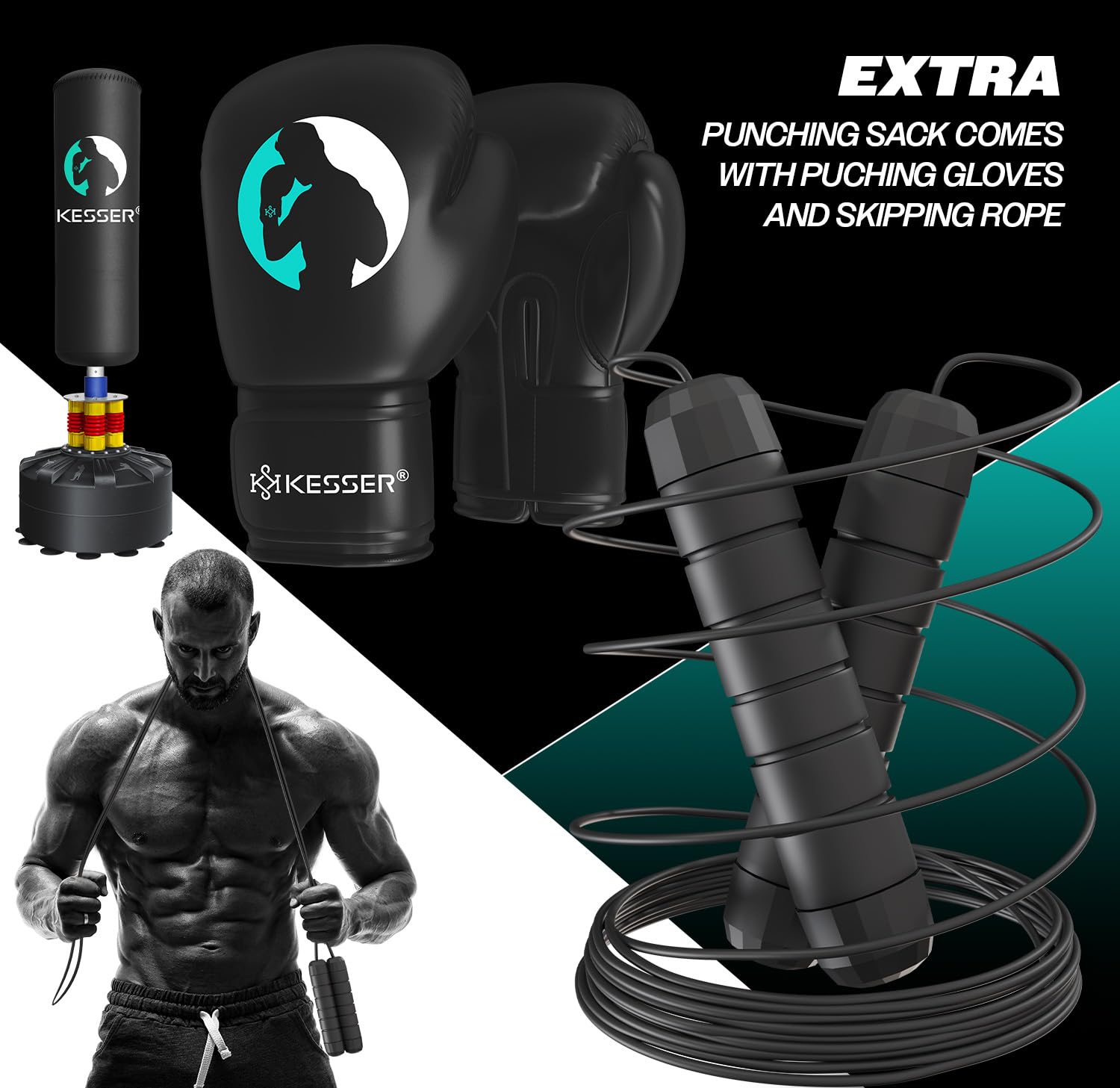 KESSER® Standboxsack-Set mit Boxhandschuhen, Springseil und Kick-Boxsack, freistehender Boxsack für MMA-Training