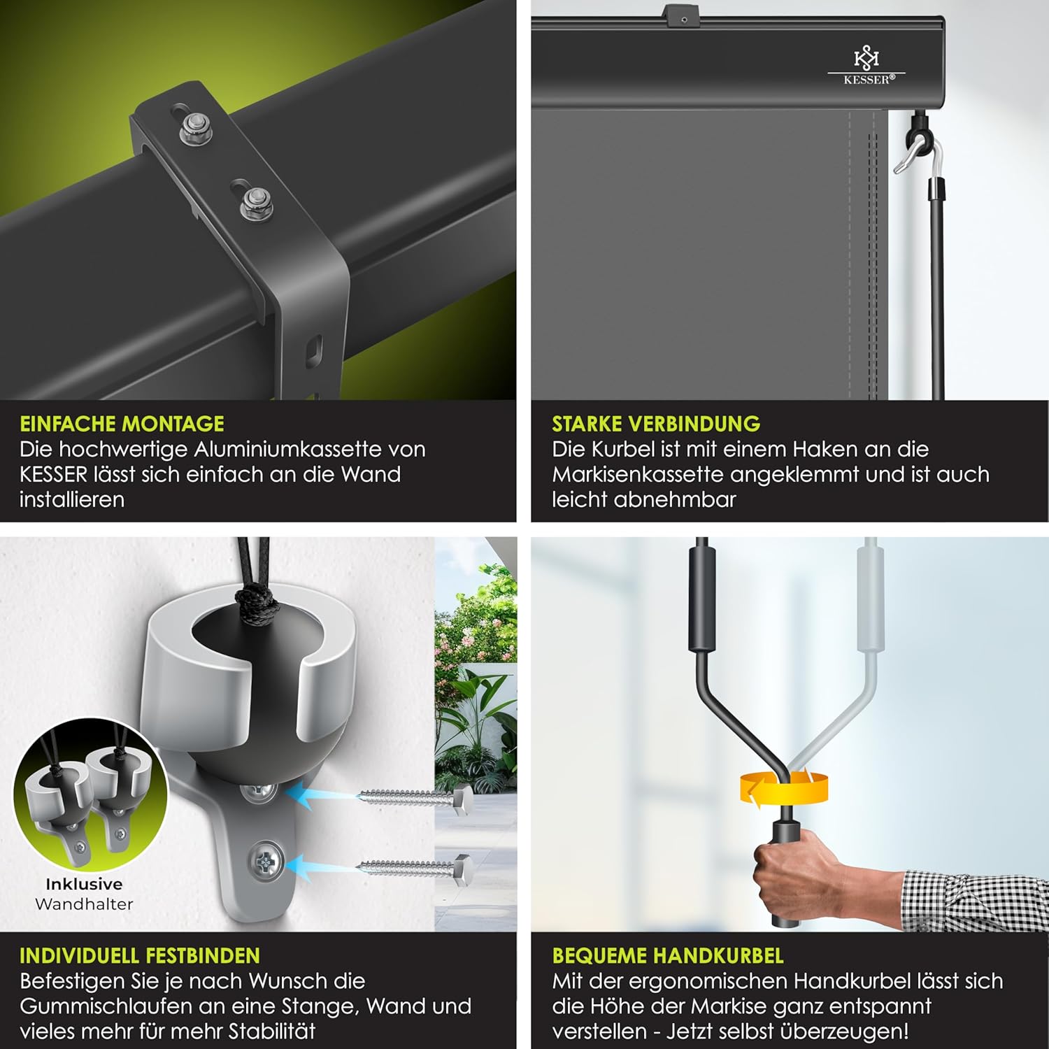 KESSER® Vertical-Außenrollos 200 x 250 cm – Hochwertige Sonnen- und Sichtschutzlösung mit Kurbelantrieb für Balkon, Terrasse & Garten
