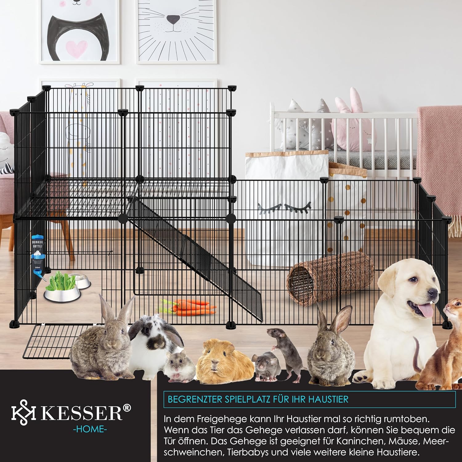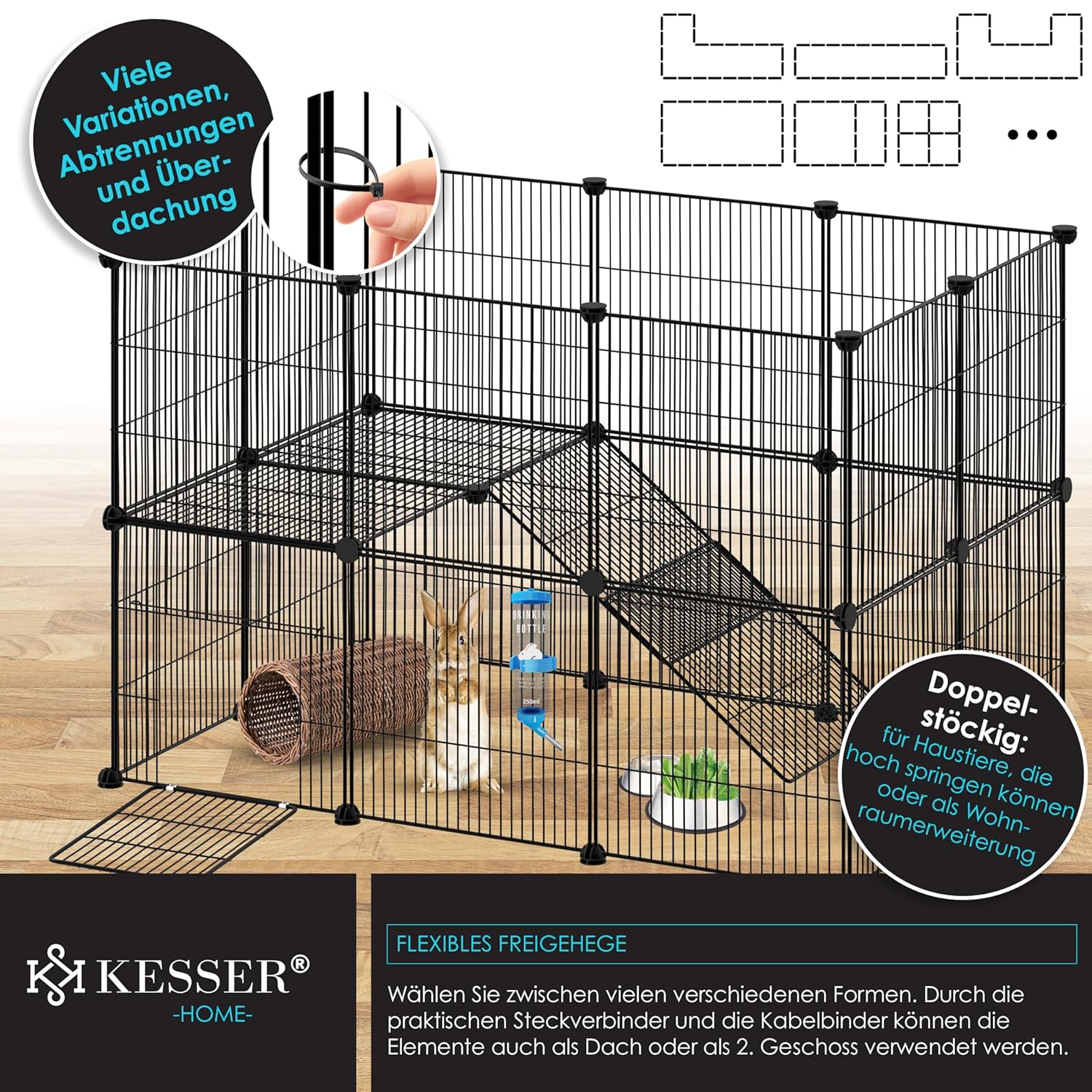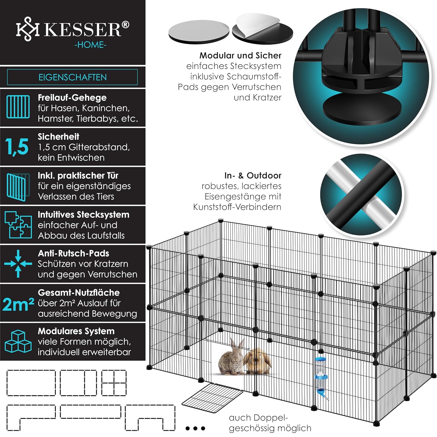 Die Zeiten von starren, eckigen Käfigen sind vorbei. Das KESSER Gehege ist ein modulares System, das sich Ihren räumlichen Gegebenheiten und den Bedürfnissen Ihrer Tiere anpasst. Ob als großzügiger Laufstall auf der Terrasse, als sicheres Freigehege im Garten oder als spielfreudige Spielwiese im Wohnzimmer – dieses System wächst mit Ihren Bedürfnissen. Dank seines intelligenten Stecksystems und der robusten Konstruktion aus pulverbeschichtetem Eisen ist es die ideale Lösung für alle, die Wert auf Sicherheit, Langlebigkeit und Flexibilität legen.